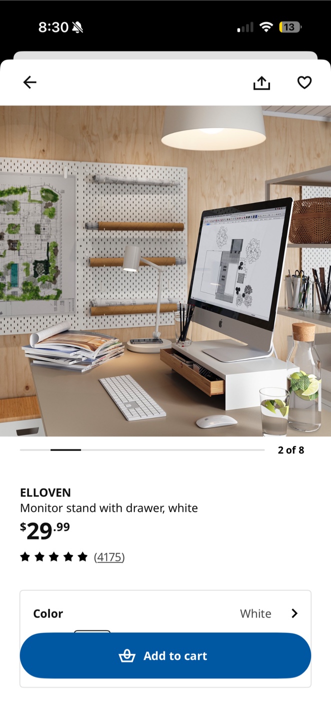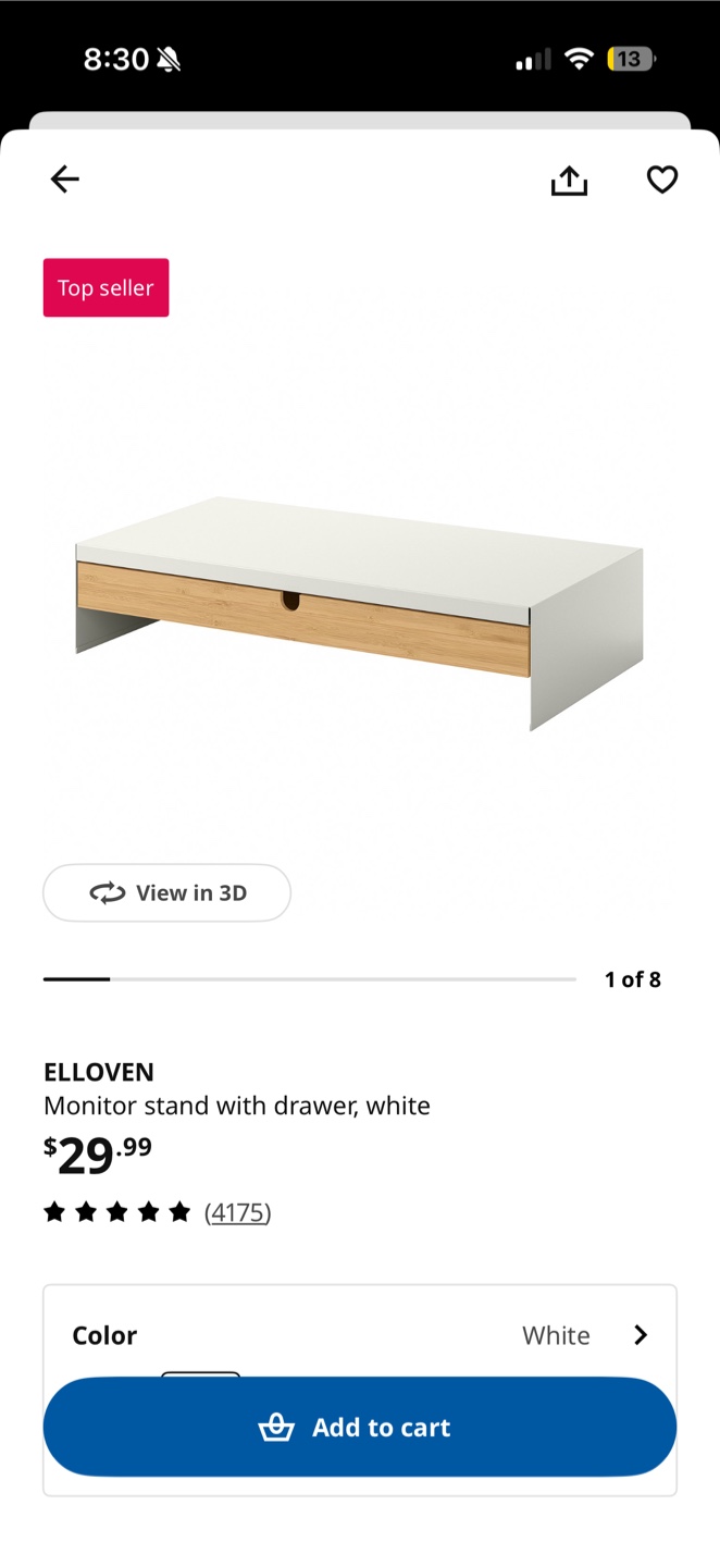 Ikea ELLOVEN Monitor Stand with Drawer - White