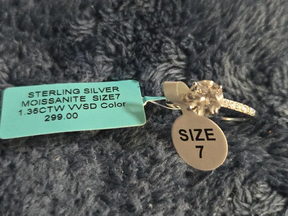 Selling a beautiful sterling silver moissanite ring in size 7! The stone is 1.35 CTW with VVSD color. It's a lovely piece that's sure to catch the eye