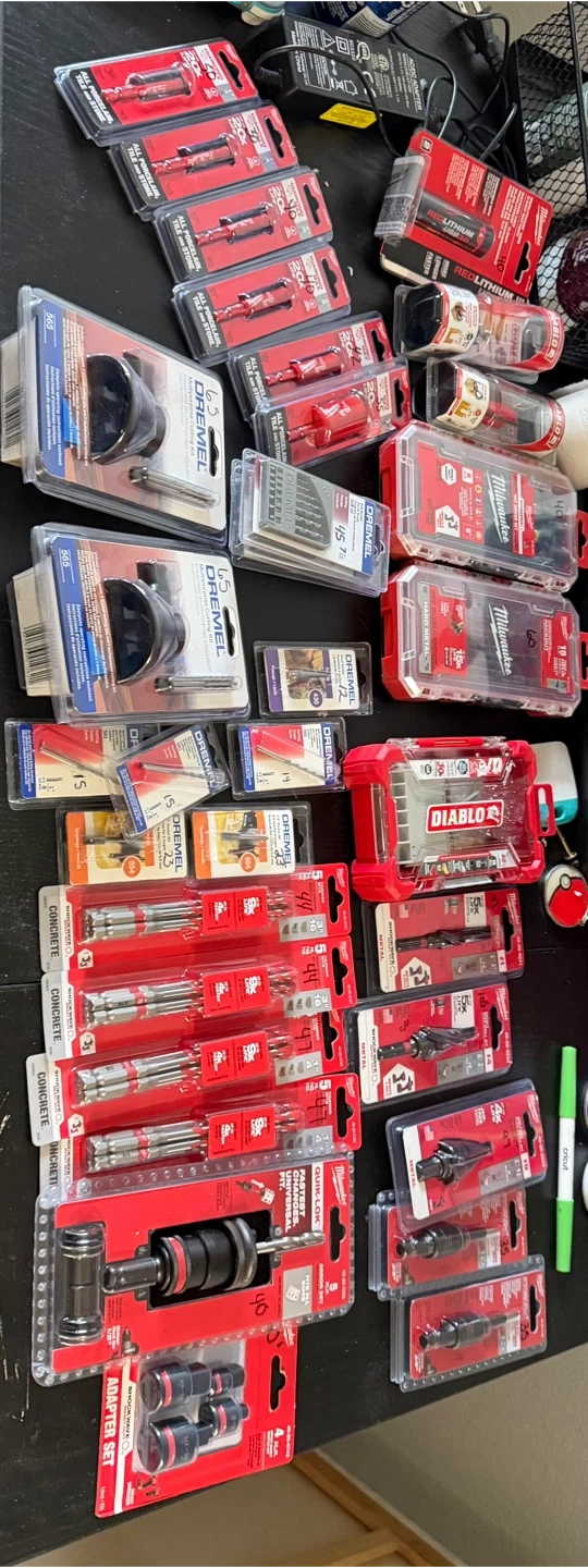 This lot includes various Milwaukee and Dremel drill bits and accessories. You'll find bits for concrete, metal, and general use, along with adapter sets and cutting kits. Great for any home renovation or DIY project!