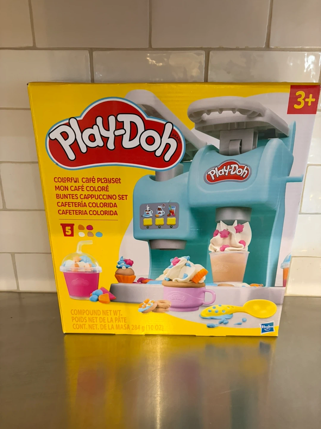 This Play-Doh set lets kids create their own colourful cafe creations. It includes compound net weight of 284g (10 oz). It's recommended for ages 3+.