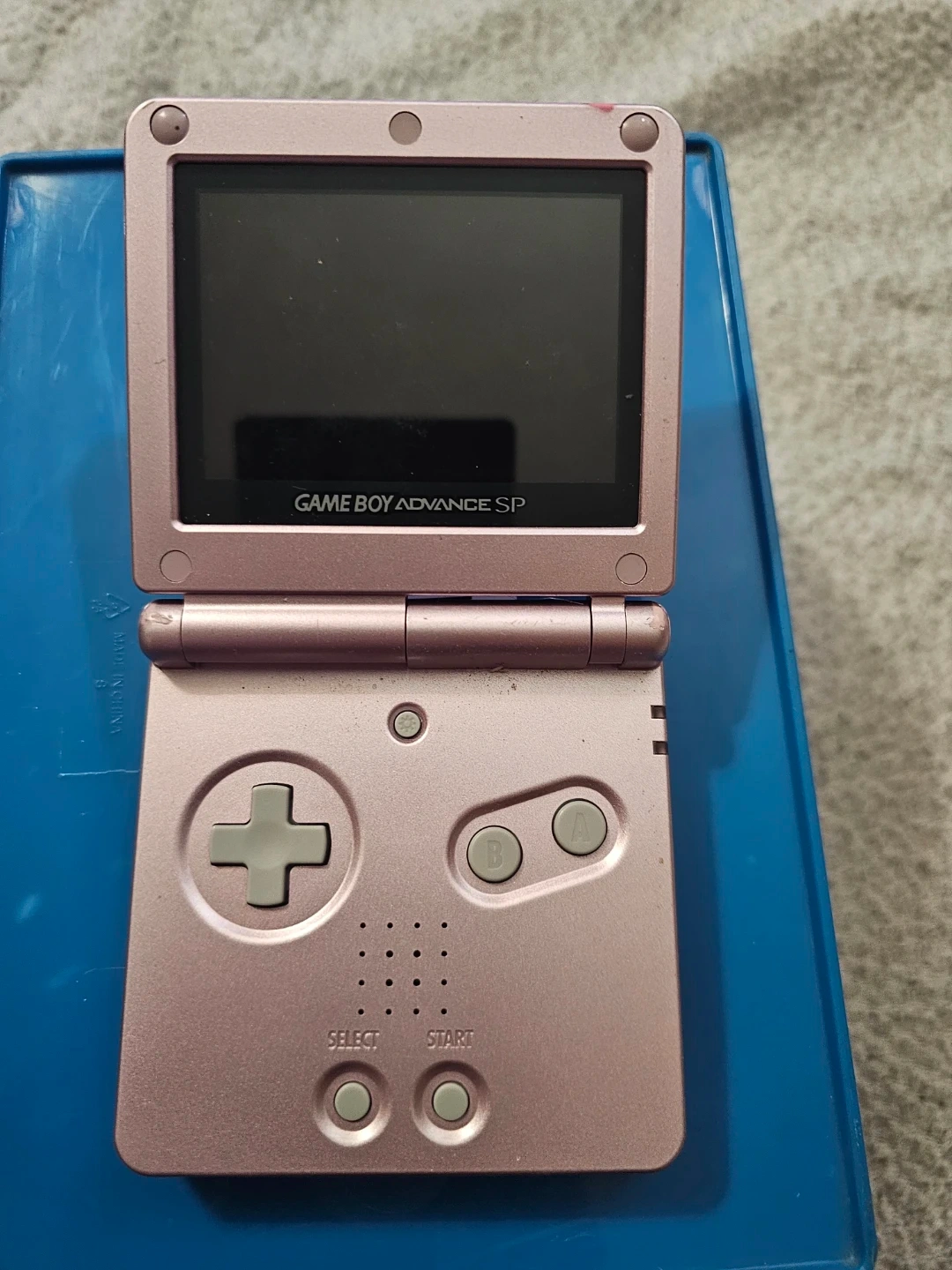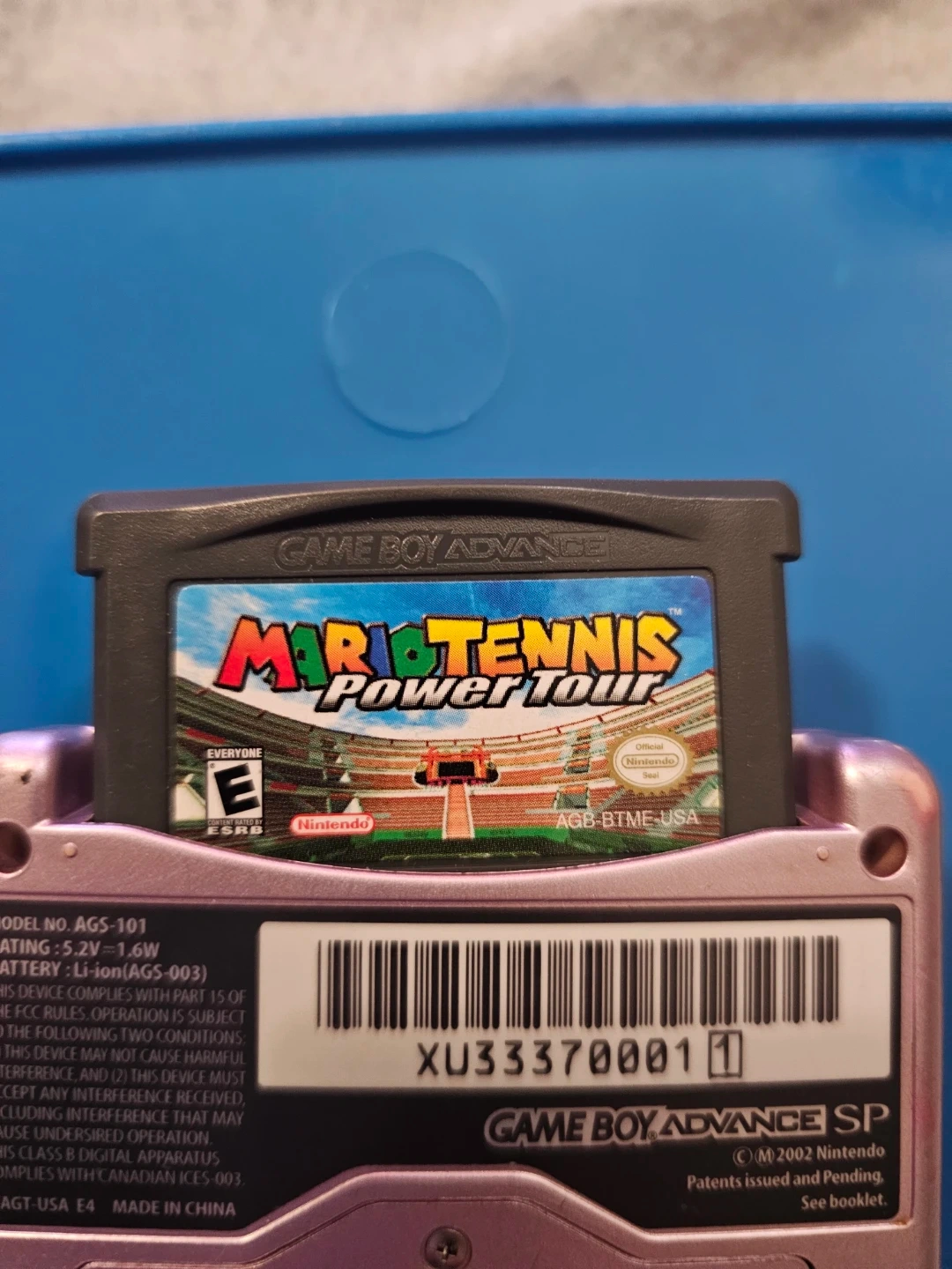Game Boy Advance SP in pink with Mario Tennis Power Tour game cartridge. Device has wear consistent with use. Includes the game cartridge and console but no charger.