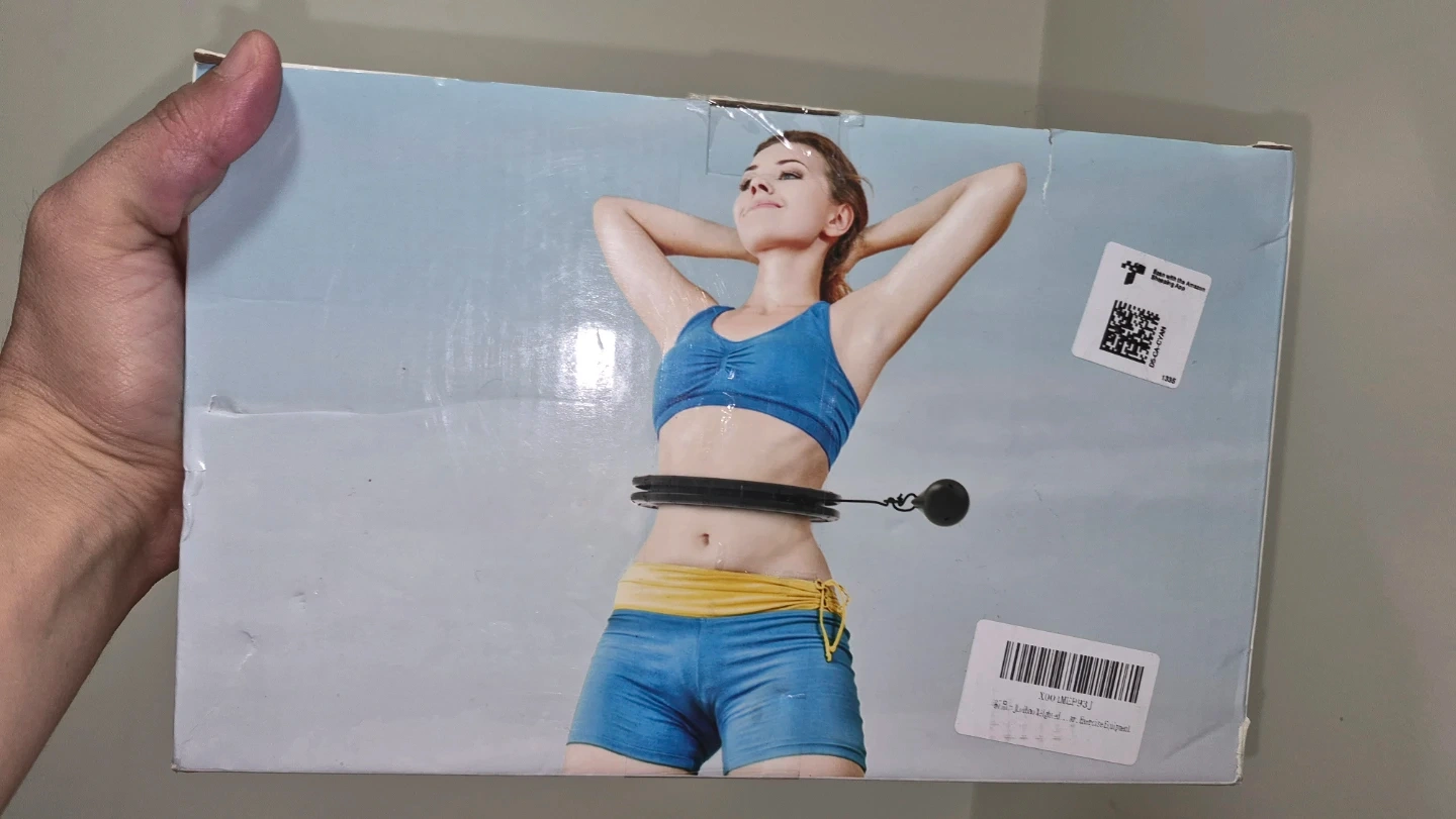 This is a smart hula hoop designed for fitness. It features a weighted ball that slides along the track. It's great for home workouts.