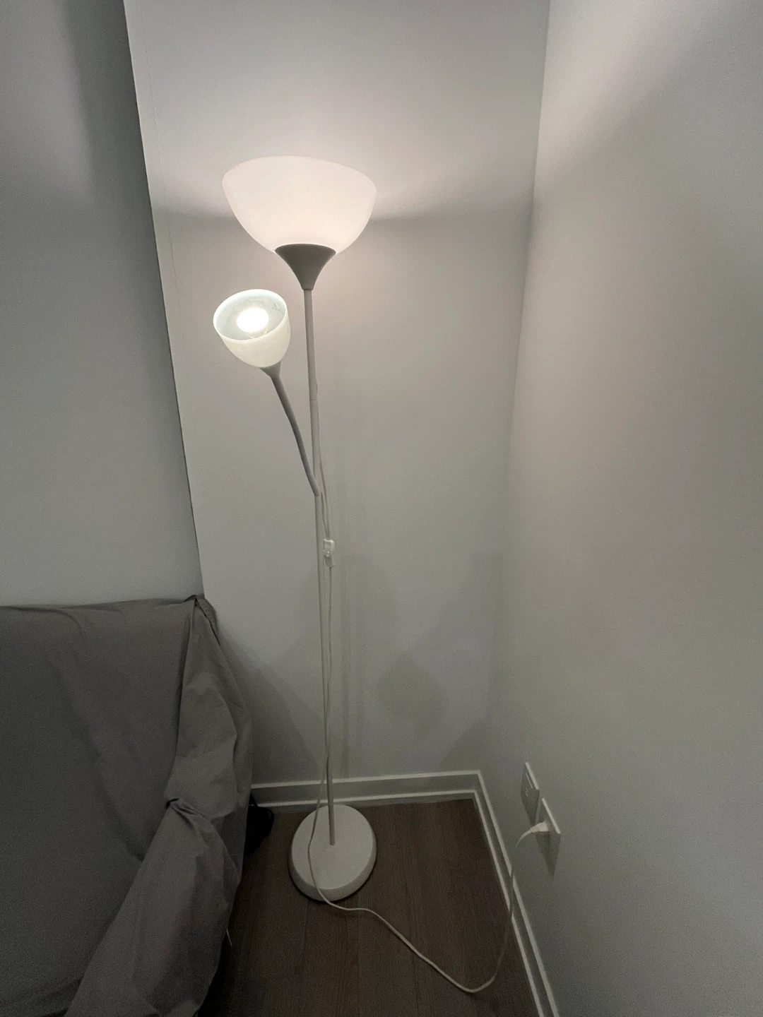 This floor lamp has two adjustable heads for directional lighting. Its modern design complements various decor styles. Great for adding ambient or task lighting to any room!