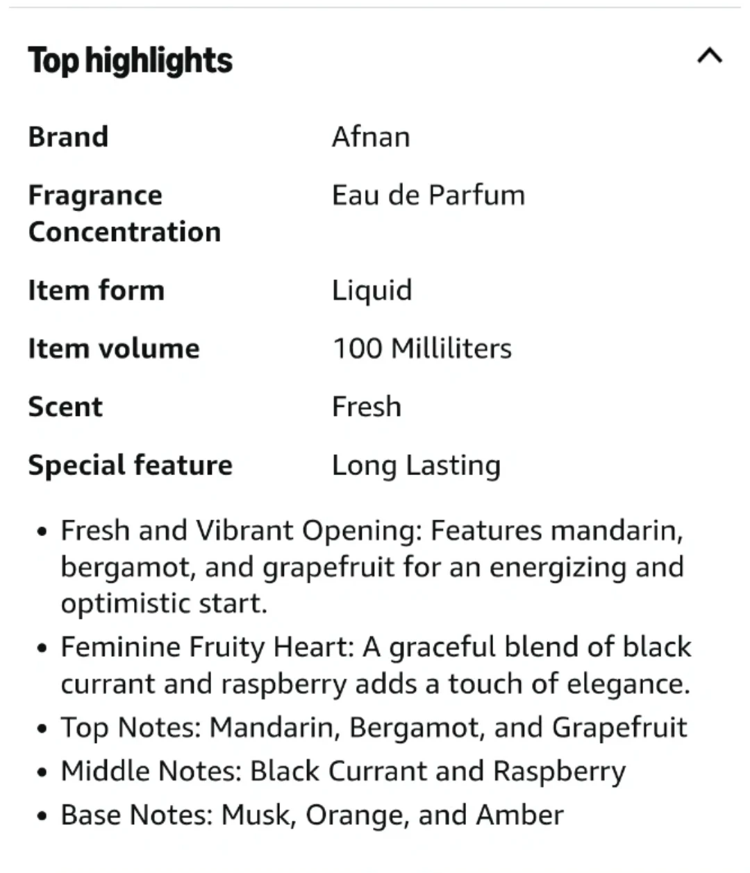 Afnan 9 AM Pour Femme is an Eau de Parfum spray. It's a fresh, long-lasting scent with top notes of mandarin, bergamot, and grapefruit.