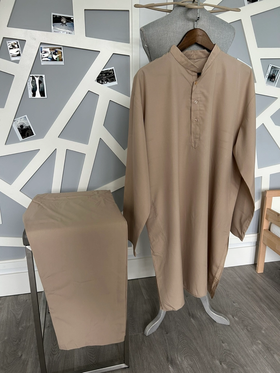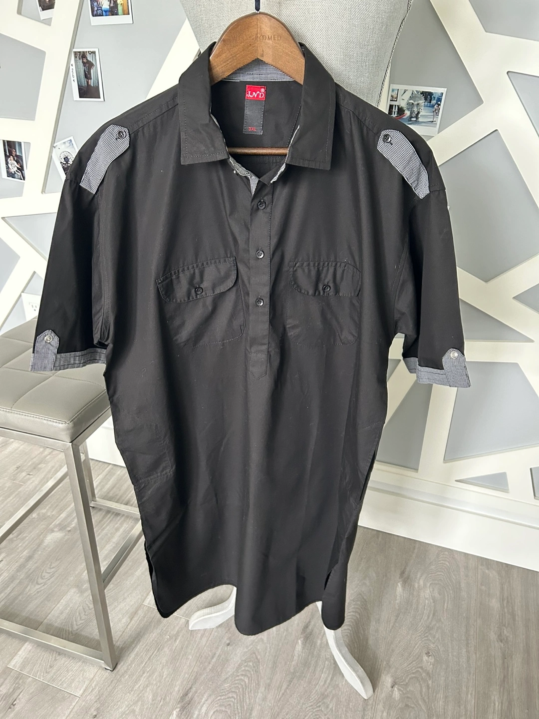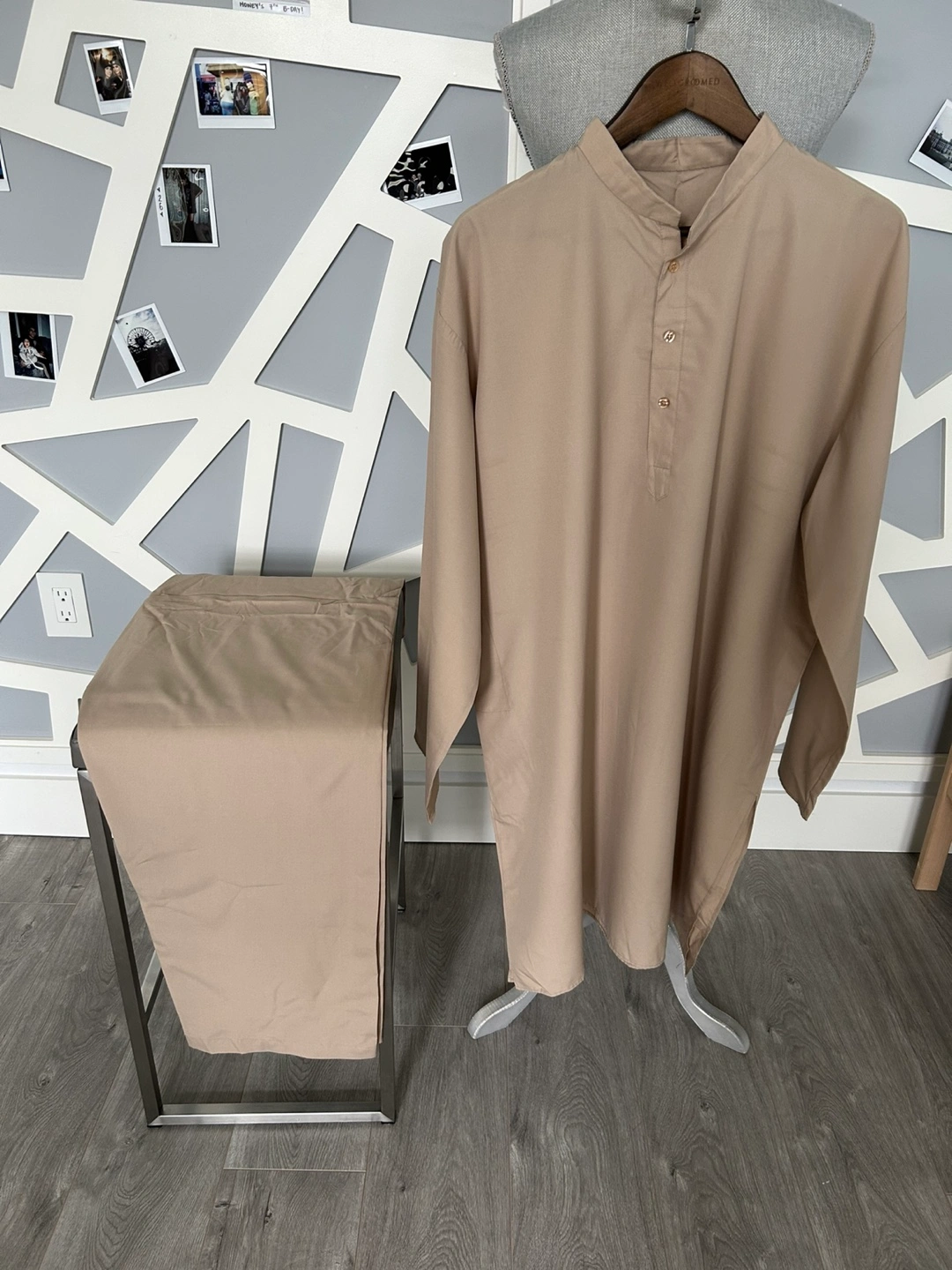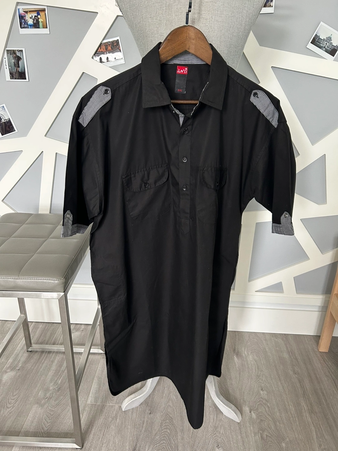 Selling men's kurta pajama sets! One is black with white embroidery, the other is beige. Another in blue. Perfect for a special occasion or everyday wear. $30 each set.