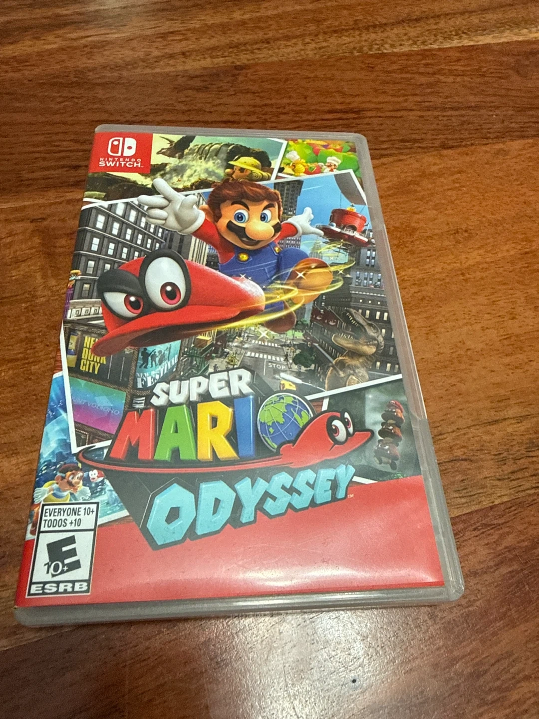 Super Mario Odyssey for Nintendo Switch. Includes the game cartridge and original case. This action-adventure game features Mario exploring vibrant worlds with Cappy. It's rated E for Everyone 10+ by ESRB.