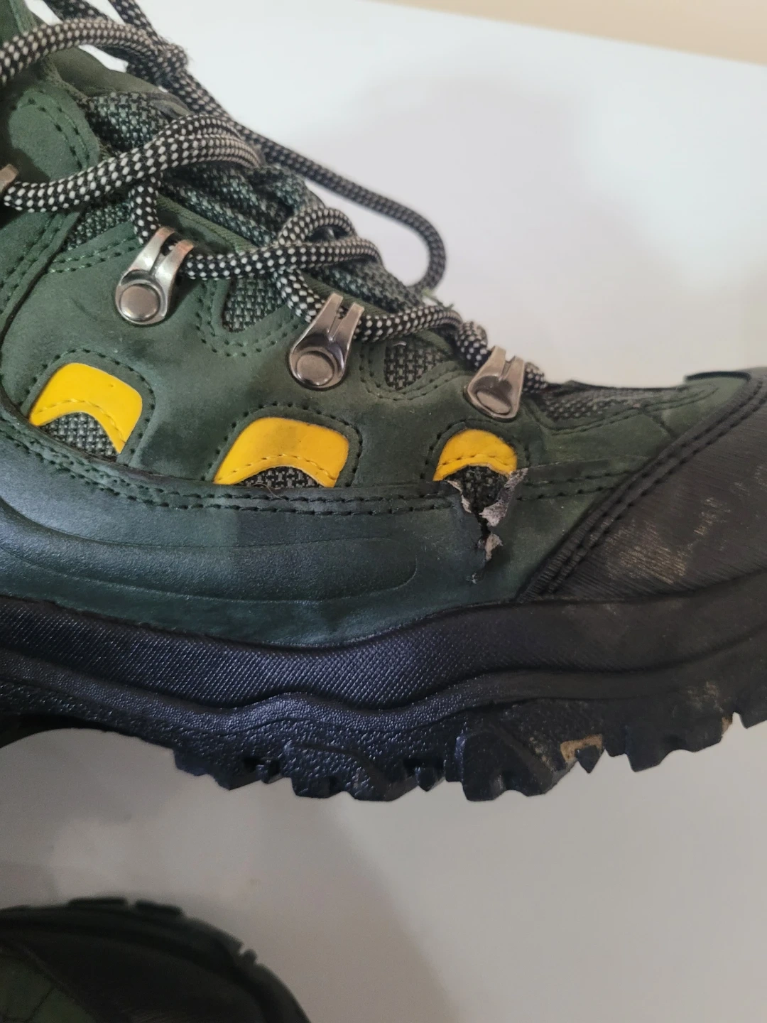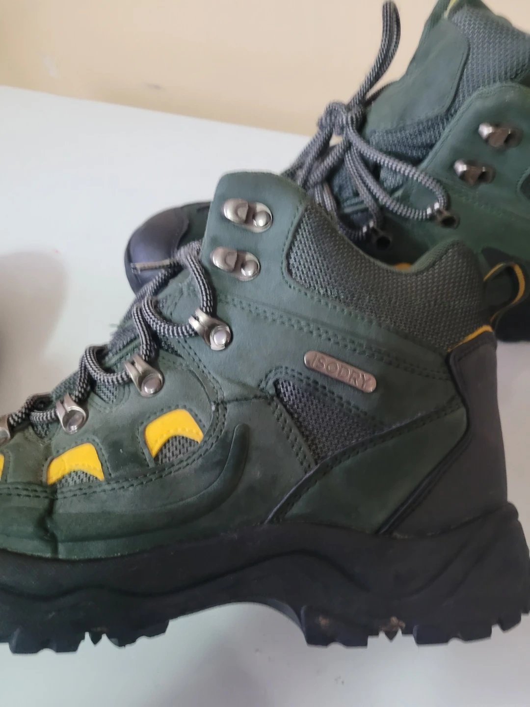 Green Mountain Warehouse hiking boots with Isodry technology. Lace-up closure and durable sole. UK size 9, US size 10, EUR 43. Synthetic and textile upper.
