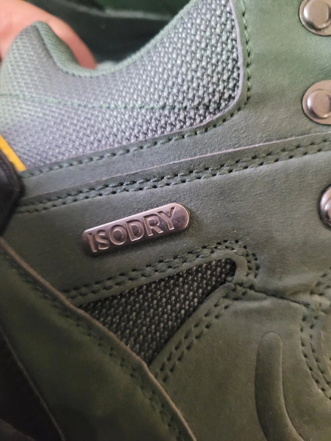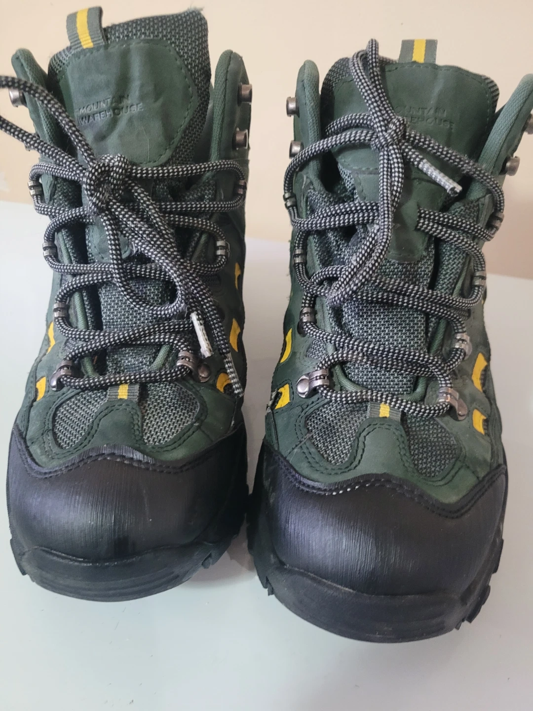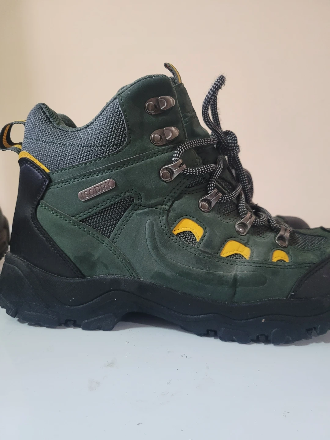 Green Mountain Warehouse hiking boots with Isodry technology. Lace-up closure and durable sole. UK size 9, US size 10, EUR 43. Synthetic and textile upper.