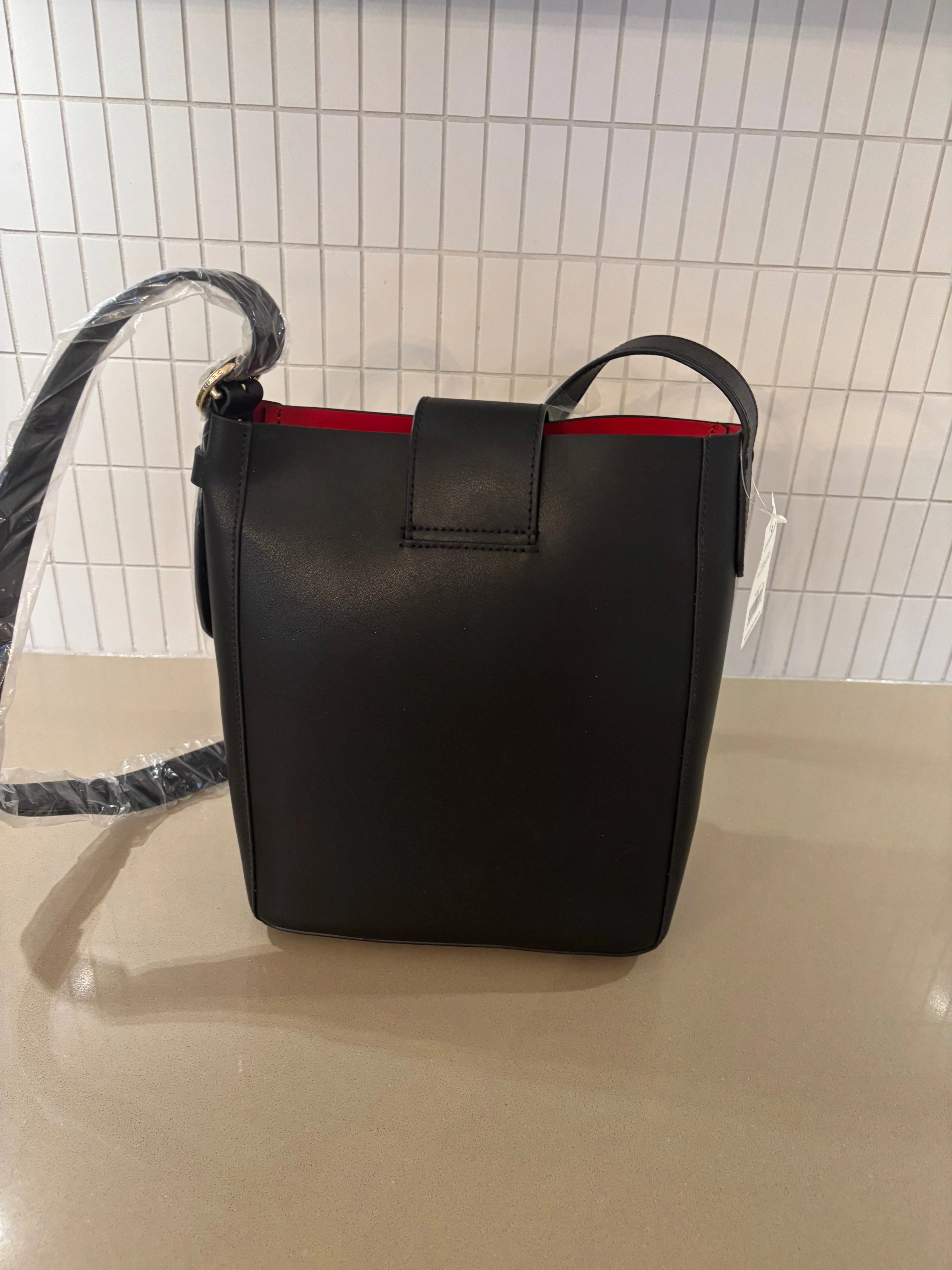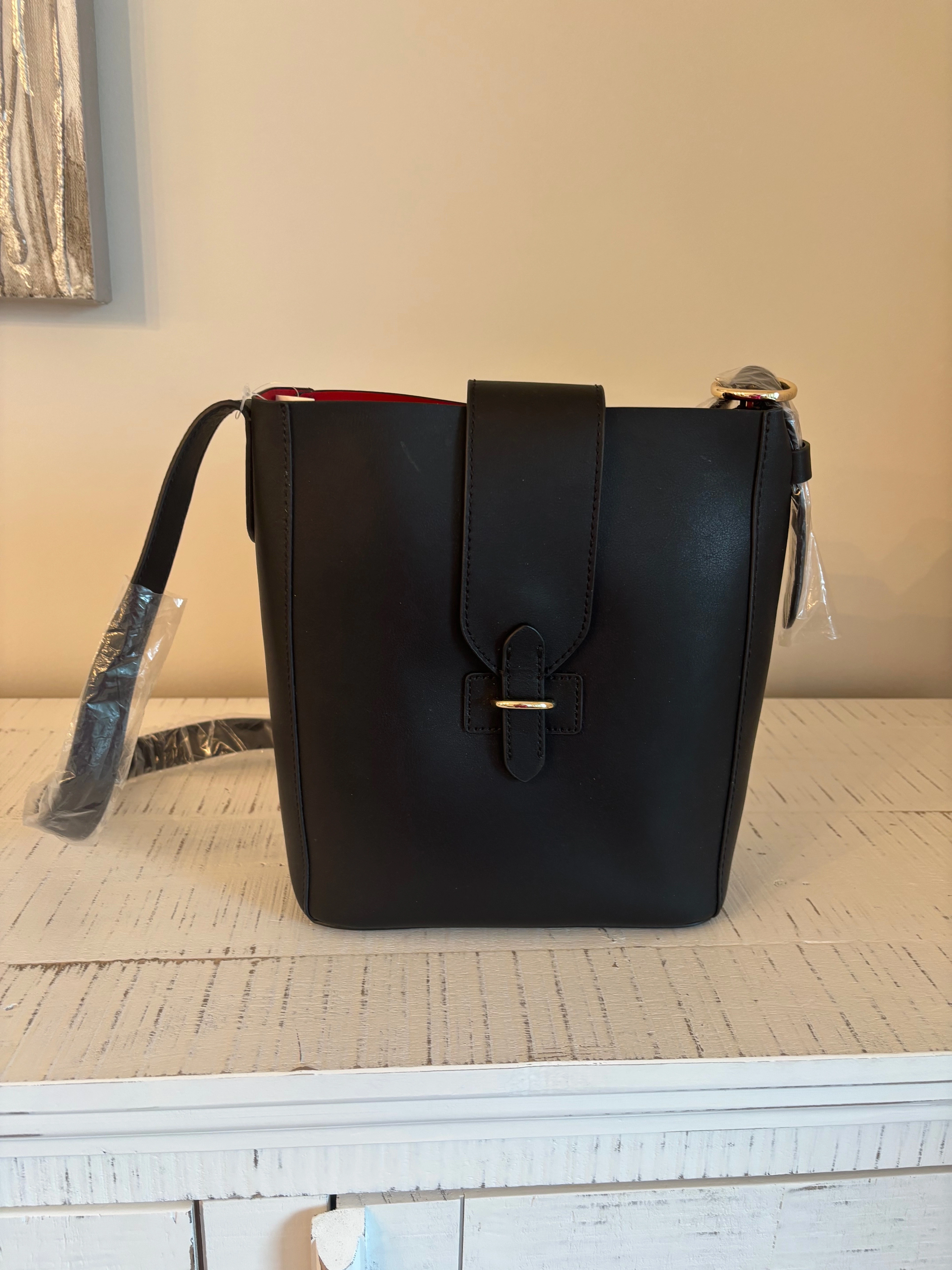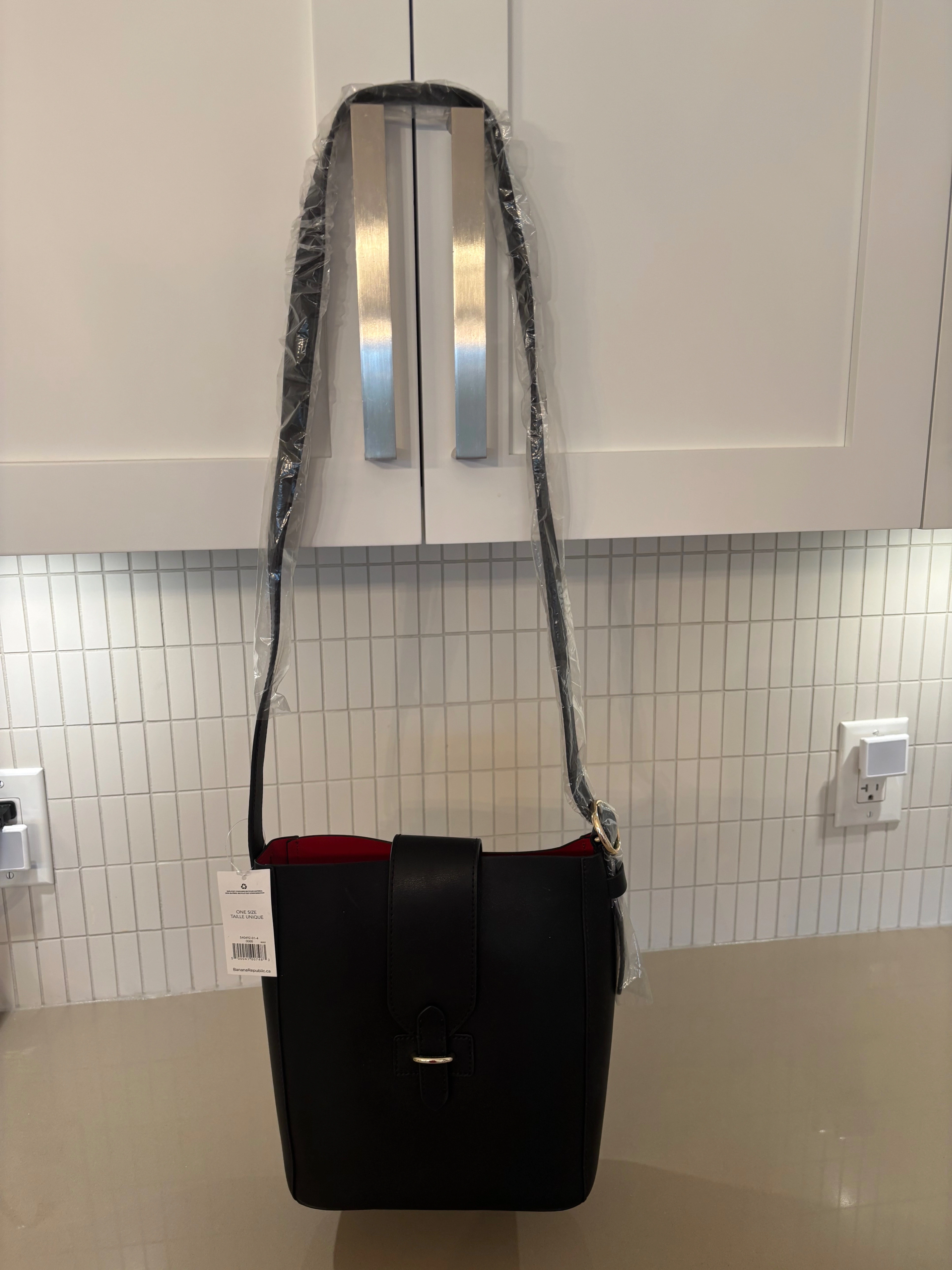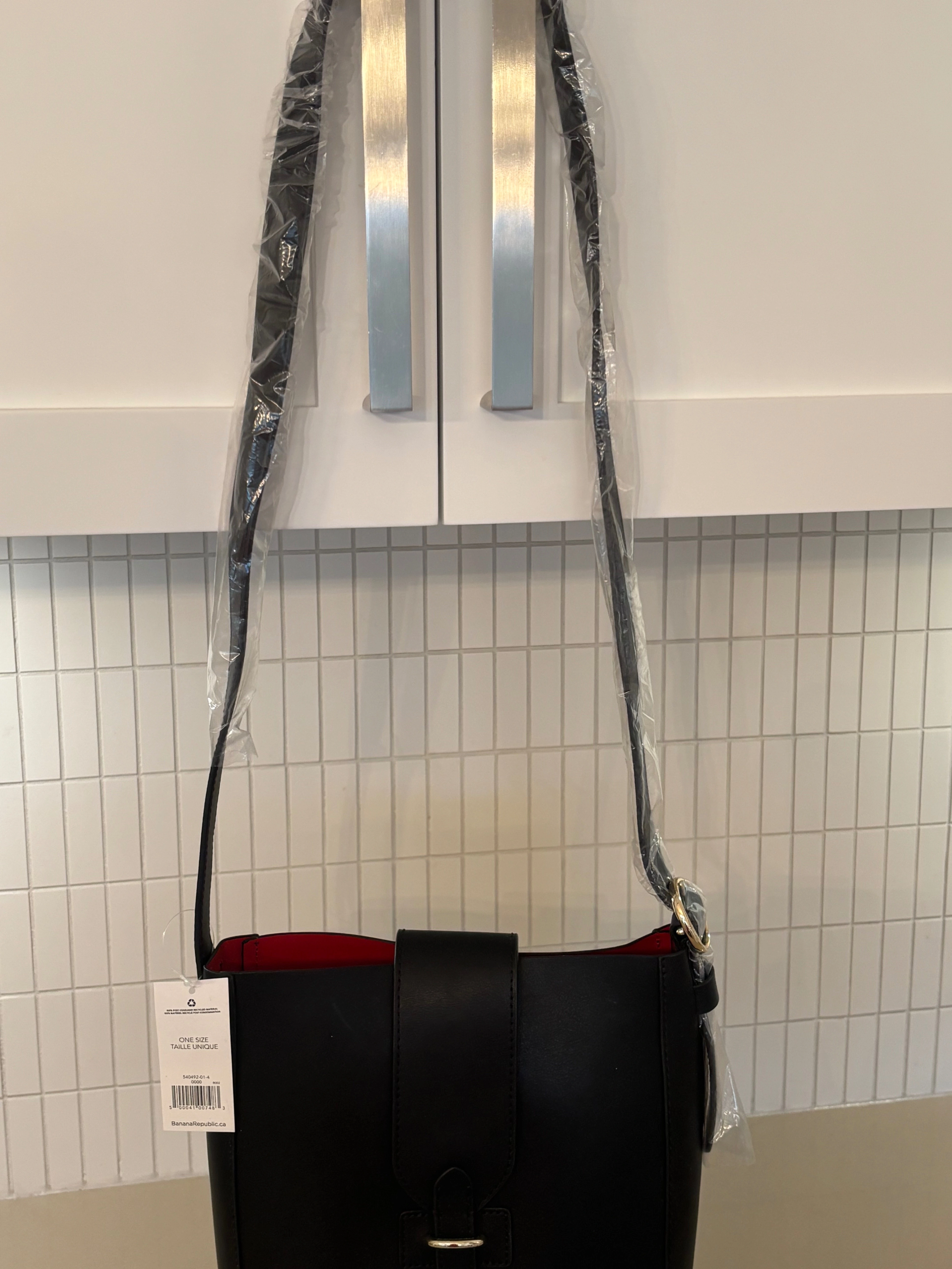 New-Banana republic, gorgeous leather bag with red interior. Bg has natural leather scuffs & lines. Has an interior pocket.