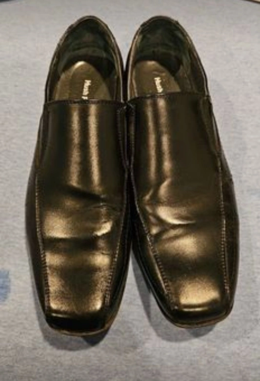 Black hush puppies men's black dress shoes USA size 10, located NW Calgary sandstone/ panorama area.