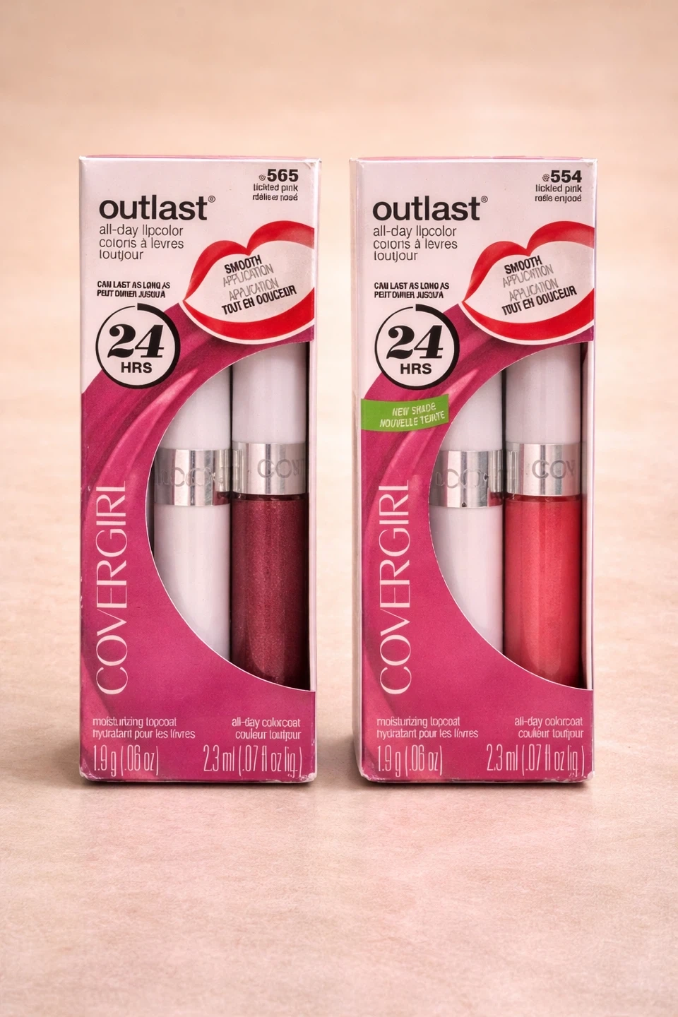 Set of two CoverGirl Outlast all-day lipcolor products, known for long-lasting wear and smooth application. Includes moisturizing topcoat for comfortable, non-drying finish.