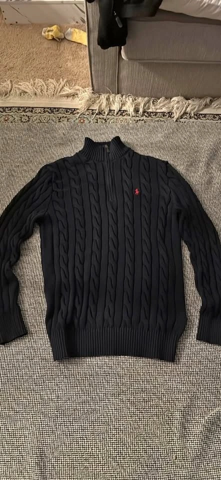 Authentic Polo Ralph Lauren sweater. Navy wool cashmere with quarter zip. Size S, fits like a M. Used only once.