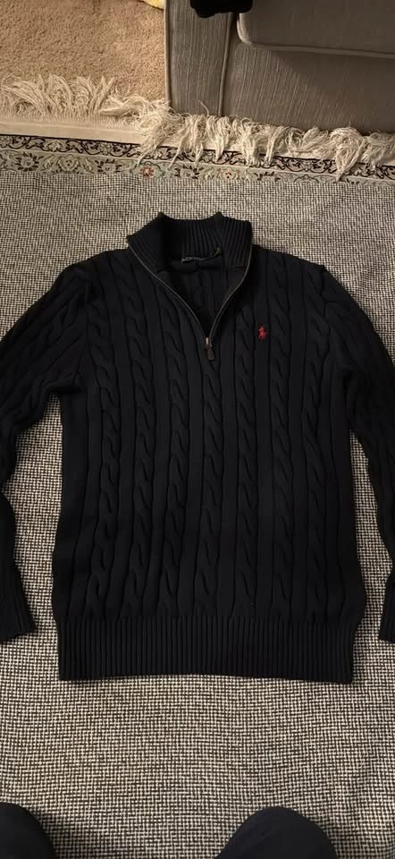 Authentic Polo Ralph Lauren sweater. Navy wool cashmere with quarter zip. Size S, fits like a M. Used only once.