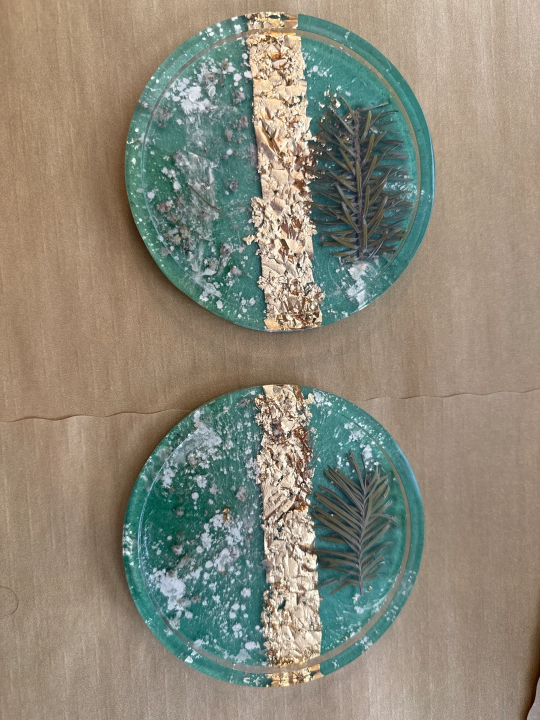 Handmade Green & Gold Resin Coasters (Set of 2)