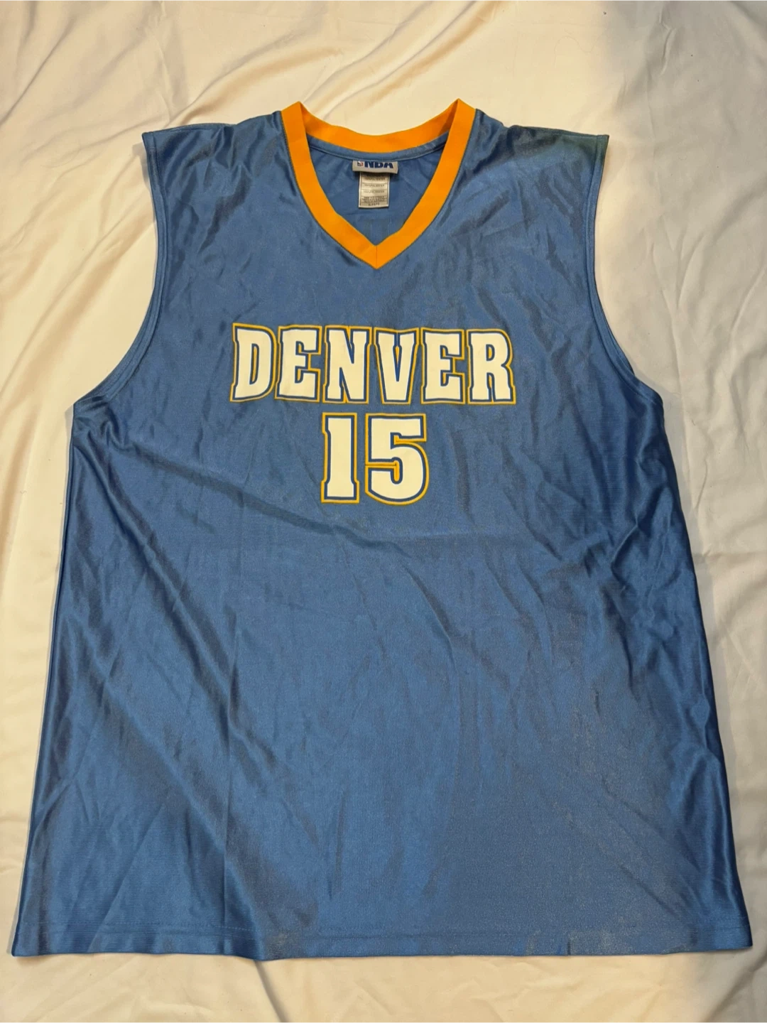 Vintage NBA Denver Nuggets #15 Jersey - Size XL. Please note there is a stain on the left shoulder as shown in photos. $10 cash, porch pick up Kennedy and Eglinton.