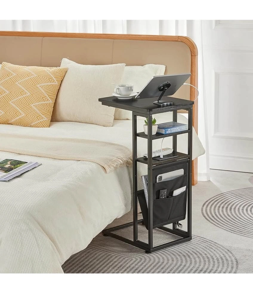 C Shaped End Table with Charging Station, 28"(H) 3-Tier C Table