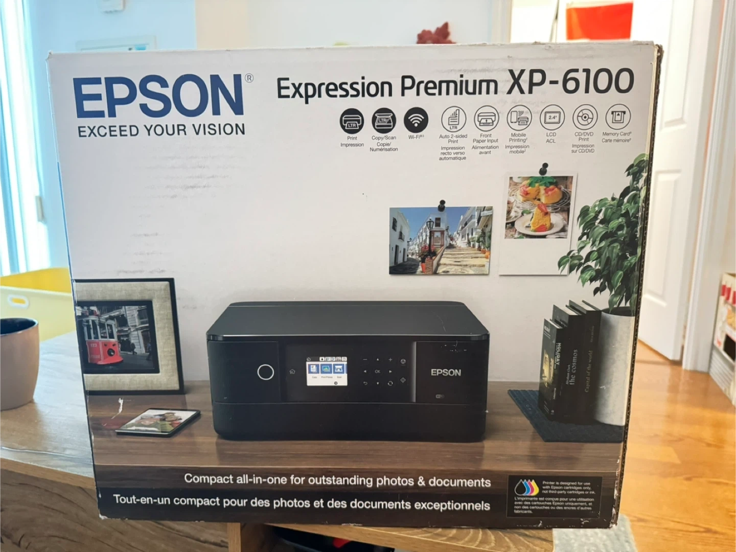 Selling an Epson Expression Premium XP-6100 printer. It's in excellent condition and comes in the original box! This compact all-in-one is great for photos and documents. Features include auto 2-sided printing, front paper input, and mobile printing.