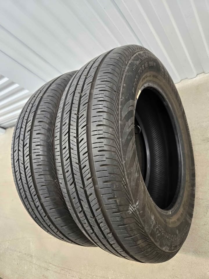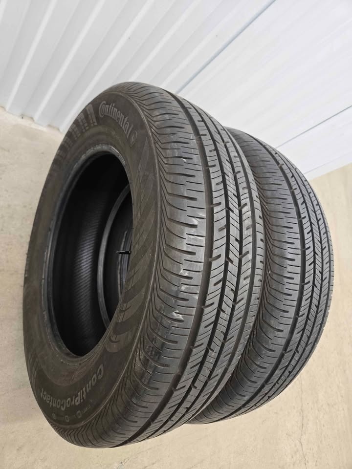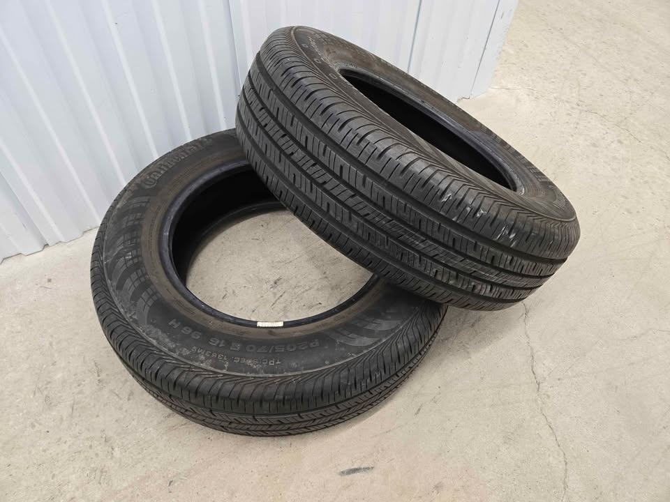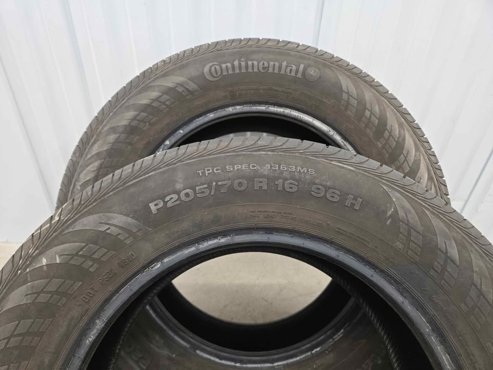 Two Continental Conti Pro Contact all season tires, size 205/70R16. Good condition pair. $100 for both.