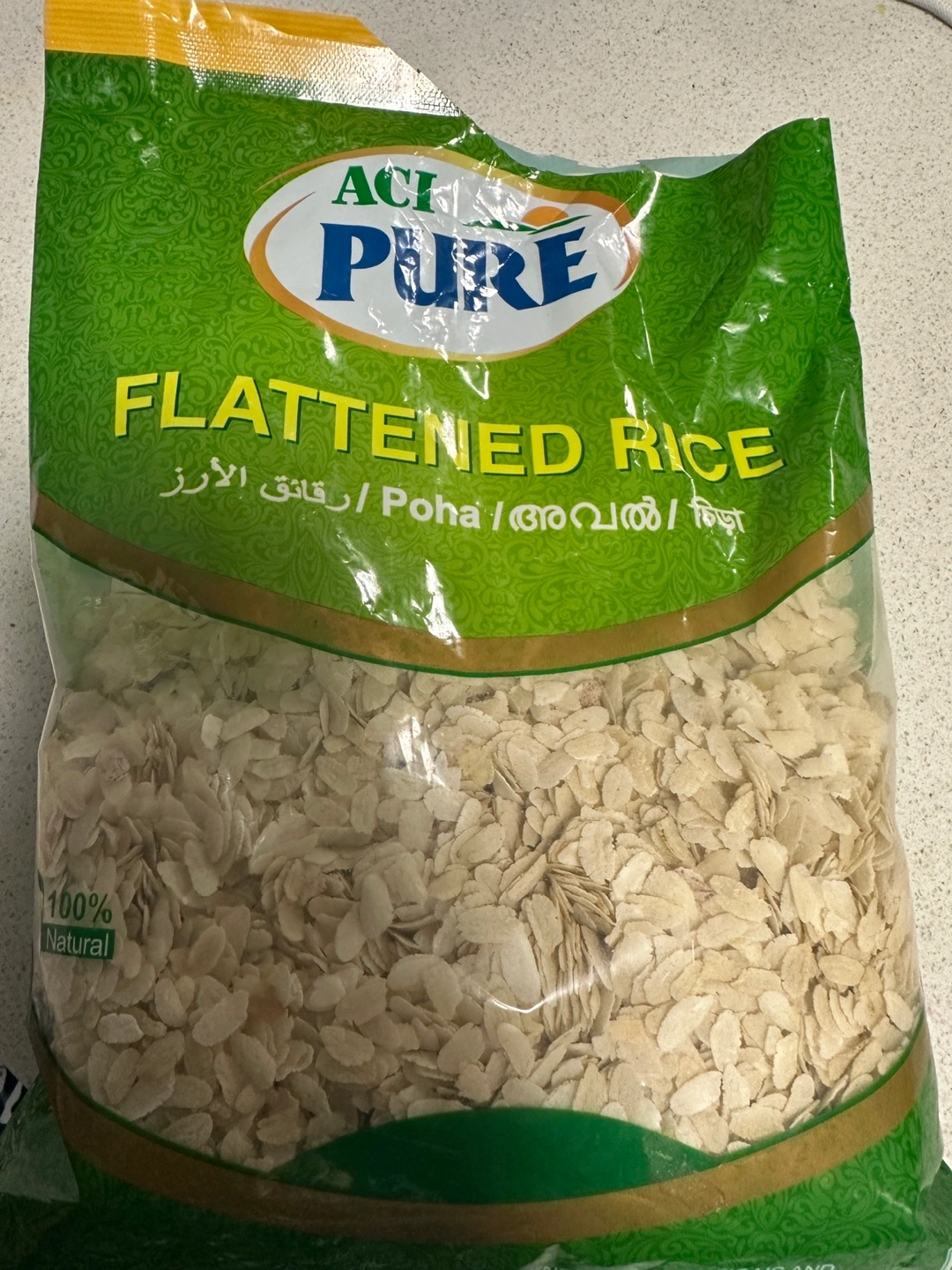 Opened 1000gm bag of ACI Pure flattened rice. 100% natural. Great for various dishes. Bought to try some dish, but I didn’t like the taste of Poha. So giving it away. Expires in September 2025.