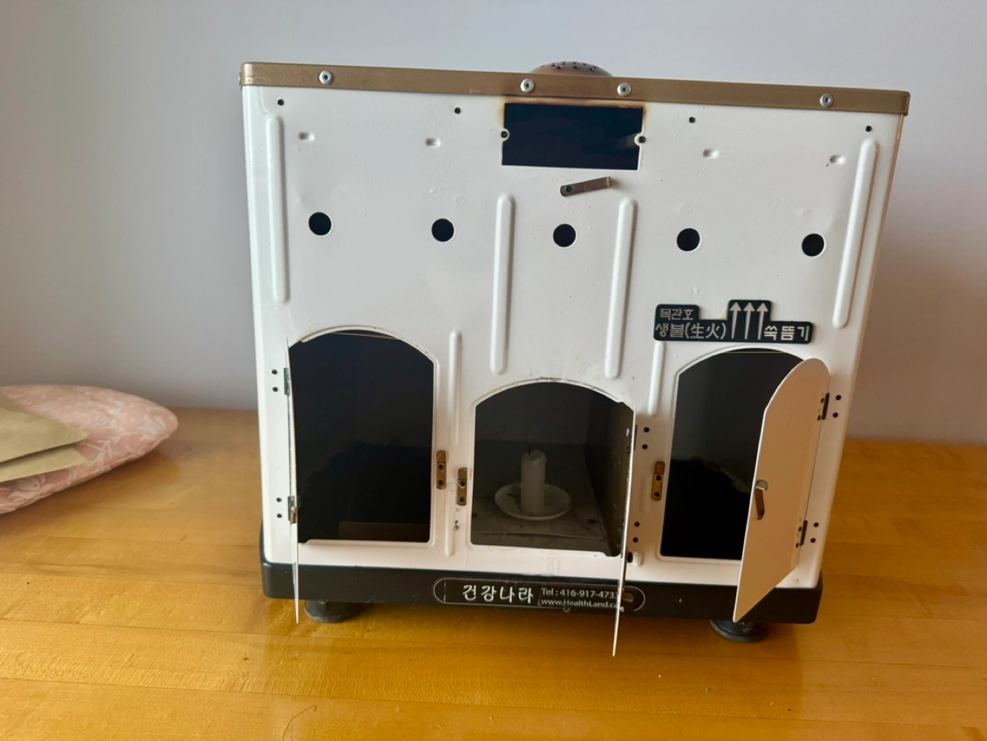 1. Mokkwanho Metal Device: Heavy-duty, white-enameled triple-door model (16" x 12" x 14").