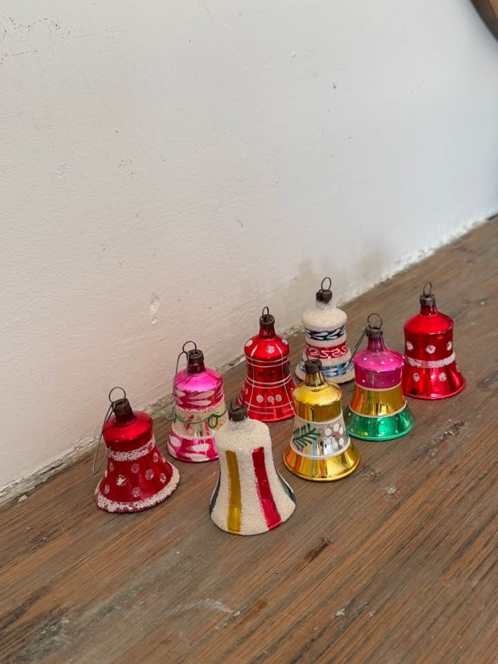 RARE Set of 9 Vintage Czech Mercury Glass Bells w/ Glass Clappers
