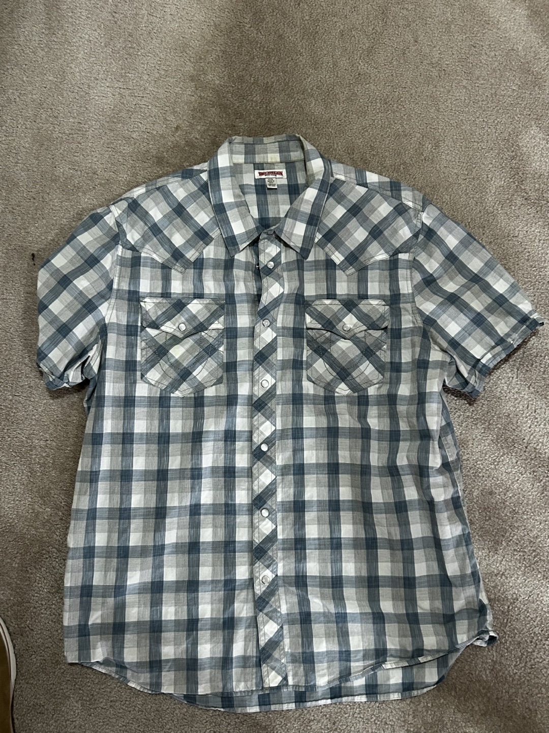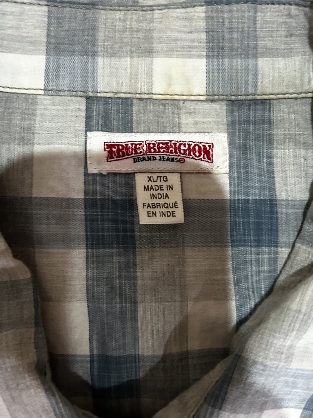 Buy & SellTrue Religion Brand Jeans Men's Plaid ShirtTrue Religion Brand Jeans Men's Plaid Shirt$25Men's short sleeve button-down shirt. Grey and white plaid pattern. Two chest pockets. Size XL/TG.ConditionLike newBrandTrue ReligionWHERE TO MEETRestaurantView MapSELLERverifiedShagzHighland Creek1104 reviews1 chats·1 favorites·23 viewsSEND CHAT TO SELLERHi Shagz! I’m interested in your listing.Hi Shagz! I’m interested in your listing.Get the Karrot app to chatSign In to chat