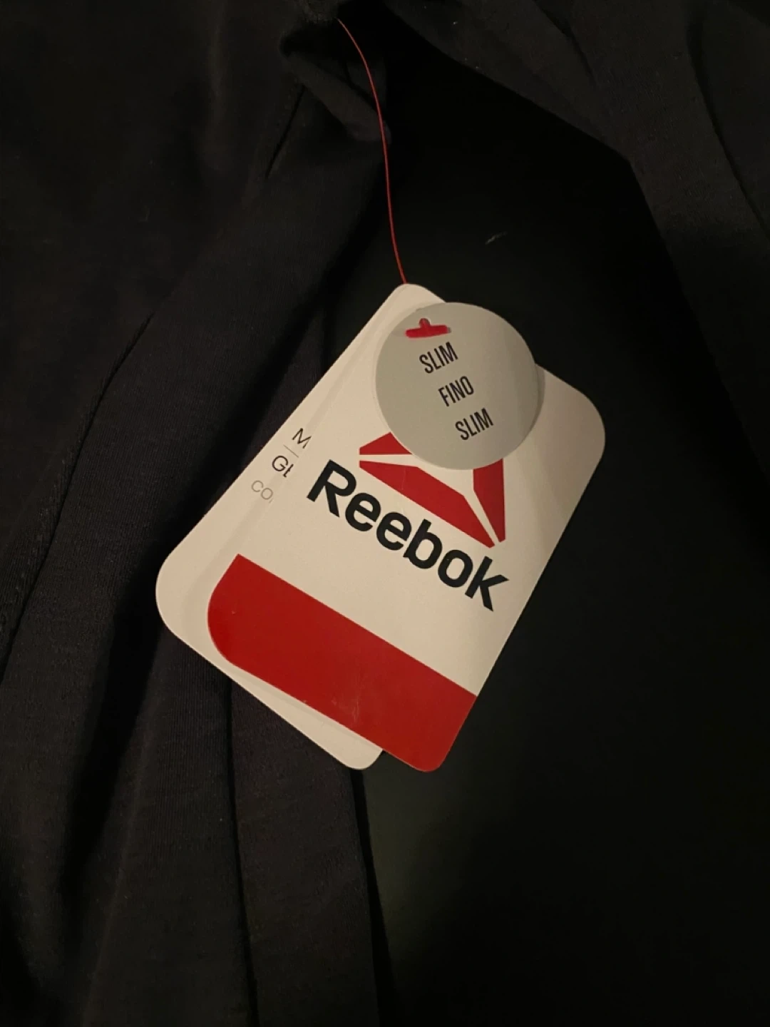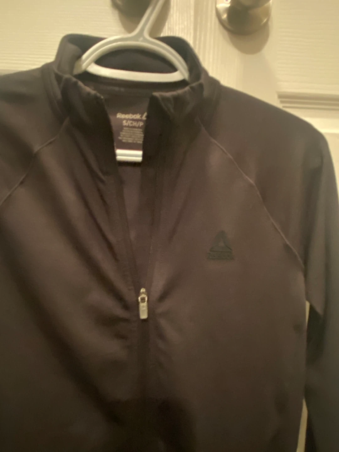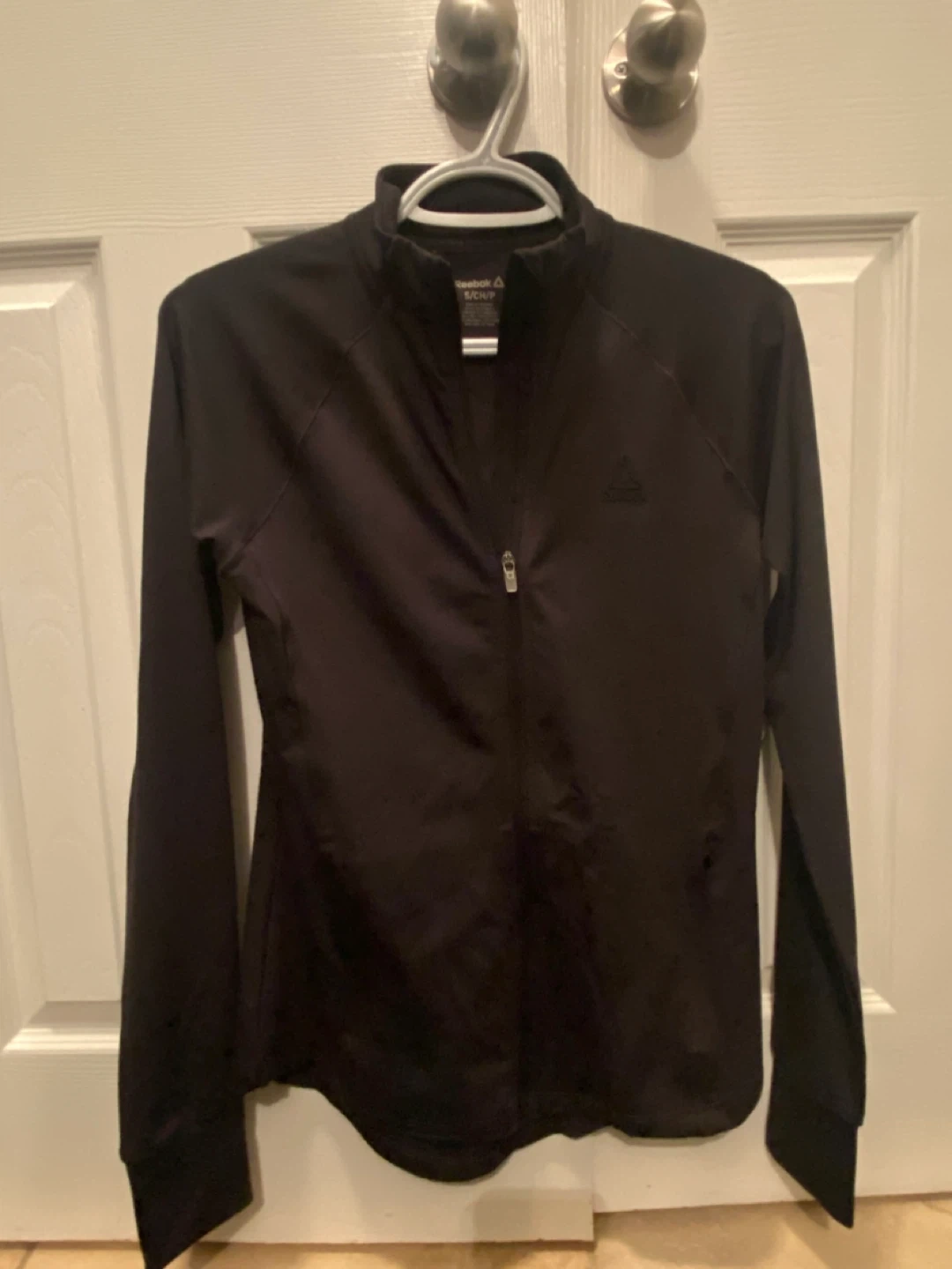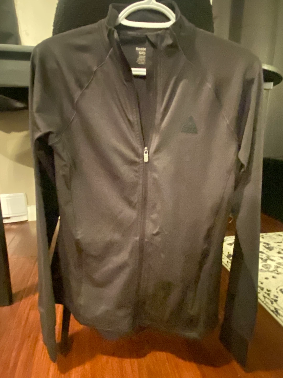 Selling a Reebok black slim fit jacket in size small. It's in great condition and features moisture management technology.