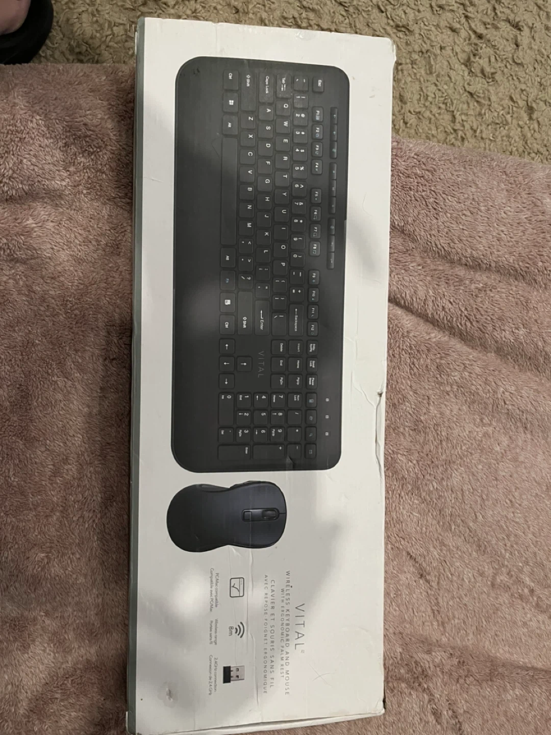This Vital wireless keyboard and mouse set offers 2.4GHz connectivity with a range of 8m. It's PC/Mac compatible and includes an ergonomic palm rest for comfortable use. Batteries are included!