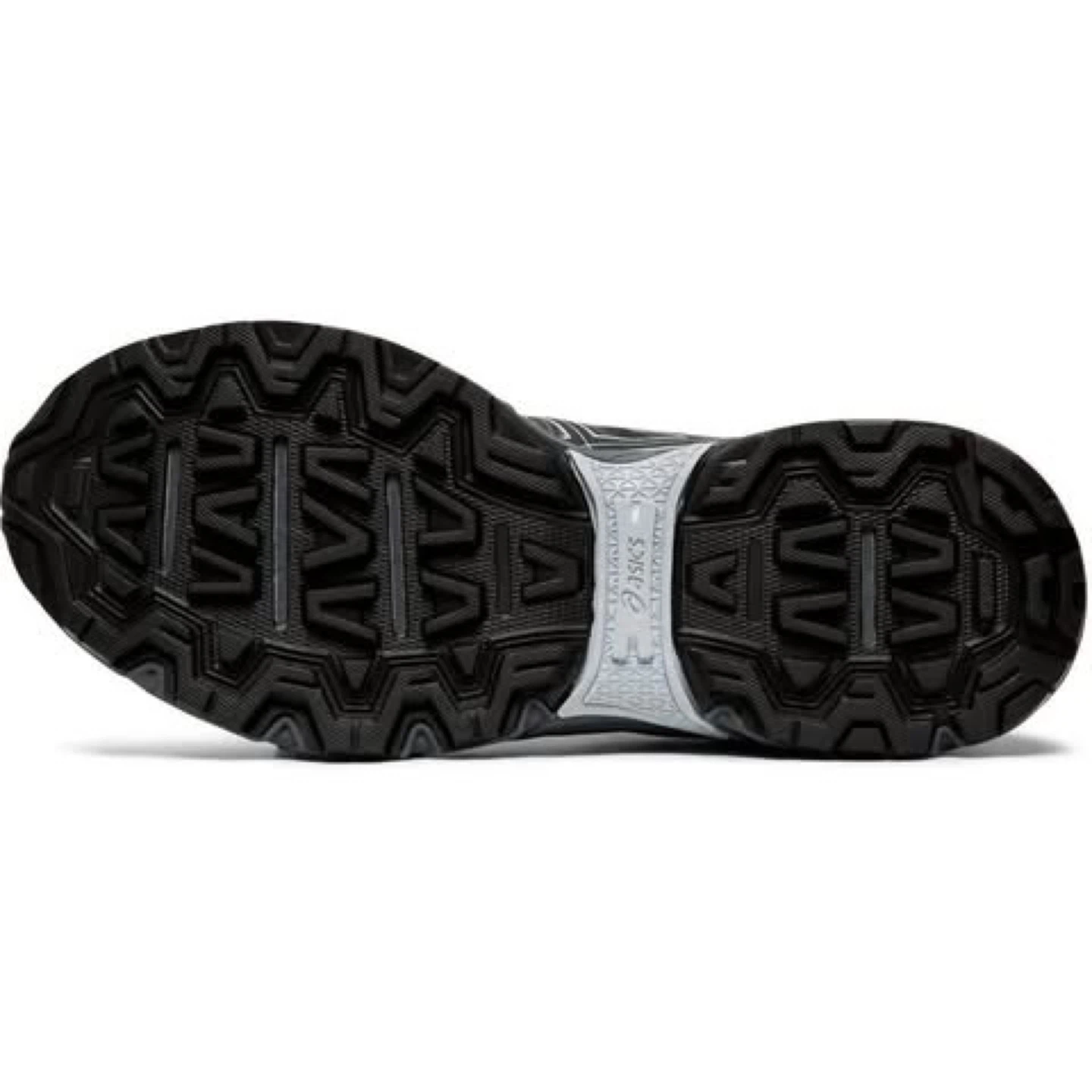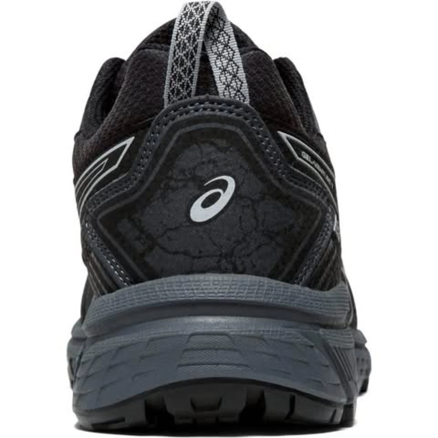 ASICS Gel-Venture 8 running shoes in black and grey. These trail running shoes feature GEL cushioning and a durable rubber outsole for traction. They're designed for active lifestyles and outdoor adventures.