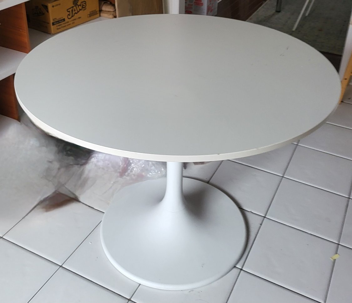 1 / 31 / 3Buy & SellWhite Tulip Style Pedestal TableWhite Tulip Style Pedestal TableFreeFREE, only Today!!! Round white table, pedestal base. Small scratches on tabletop. Good condition overall. Perfect for small spaces.ConditionOkayWHERE TO MEETEdenbridge DrView MapSELLERverifiedAnnaThornhill1195 reviews2 chats·1 favorites·41 viewsSEND CHAT TO SELLERHi Anna! I’m interested in your listing.Hi Anna! I’m interested in your listing.Get the Karrot app to chatSign In to chat
