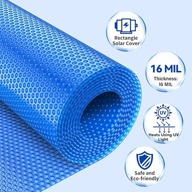 18 Foot Round Solar Pool Cover – 16-mil Blue Heavy-Duty Solar Blanket for Above Ground & In-Ground Pools, Insulating Pool Heater Cover. Final sale – no returns, no warranty. Check and test on pickup. Condition: New/Open Box Pickup: St. Catharines – North Product Highlights: Designed for 18 ft round pools (above-ground and in-ground) 16-mil premium solar blanket – strong, heavy-duty material Reduces evaporation and chemical loss Naturally warms water using solar energy Easy handling and storage – durable yet lightweight ✅ Tested and works perfectly. Clean and ready to use. ✅ Cash or e-transfer accepted. Cross-posted. Available until sold. ✅