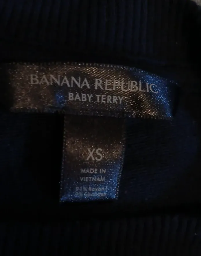Selling a Banana Republic Baby Terry top in size XS! It's made in Vietnam and composed of 91% Rayon and 9% Spandex