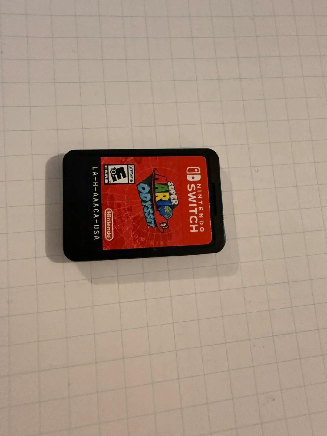 This is the Super Mario Odyssey game cartridge for Nintendo Switch. It's rated E for Everyone 10+ by ESRB.