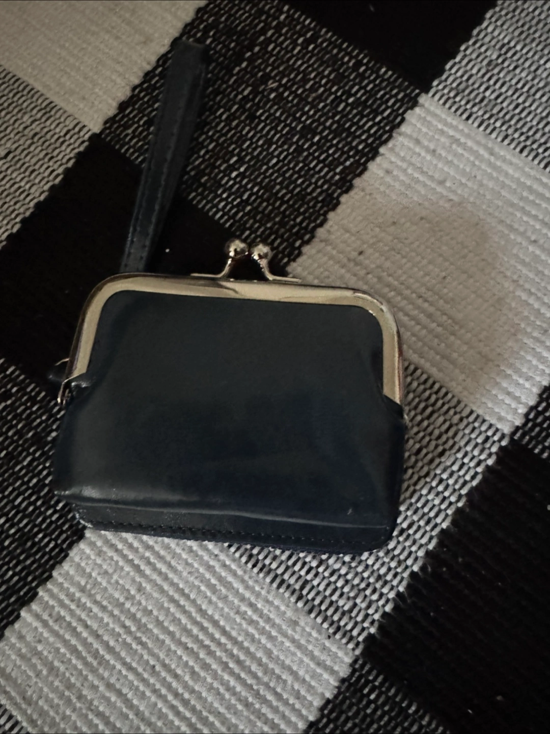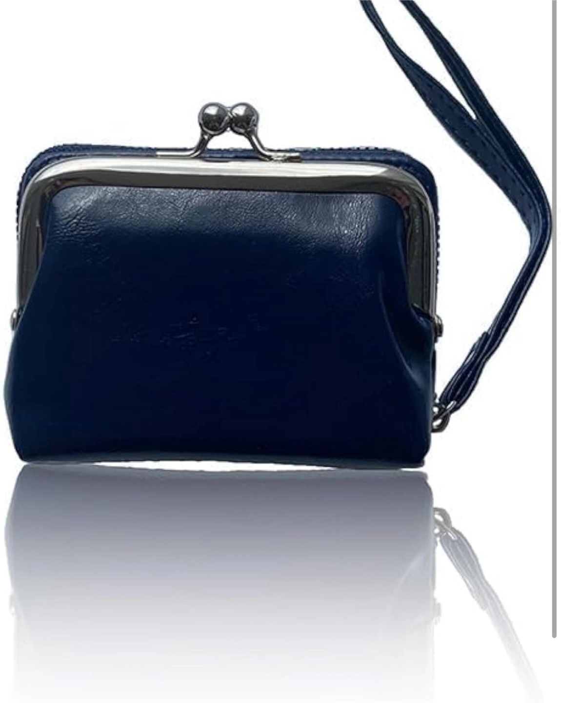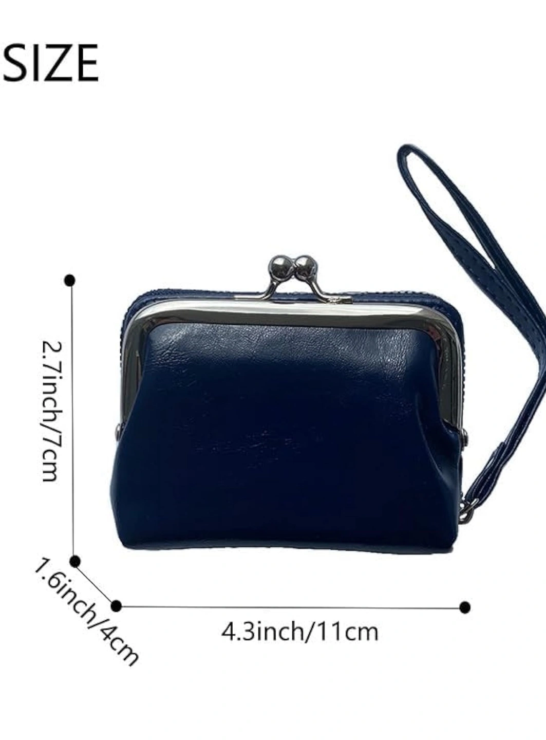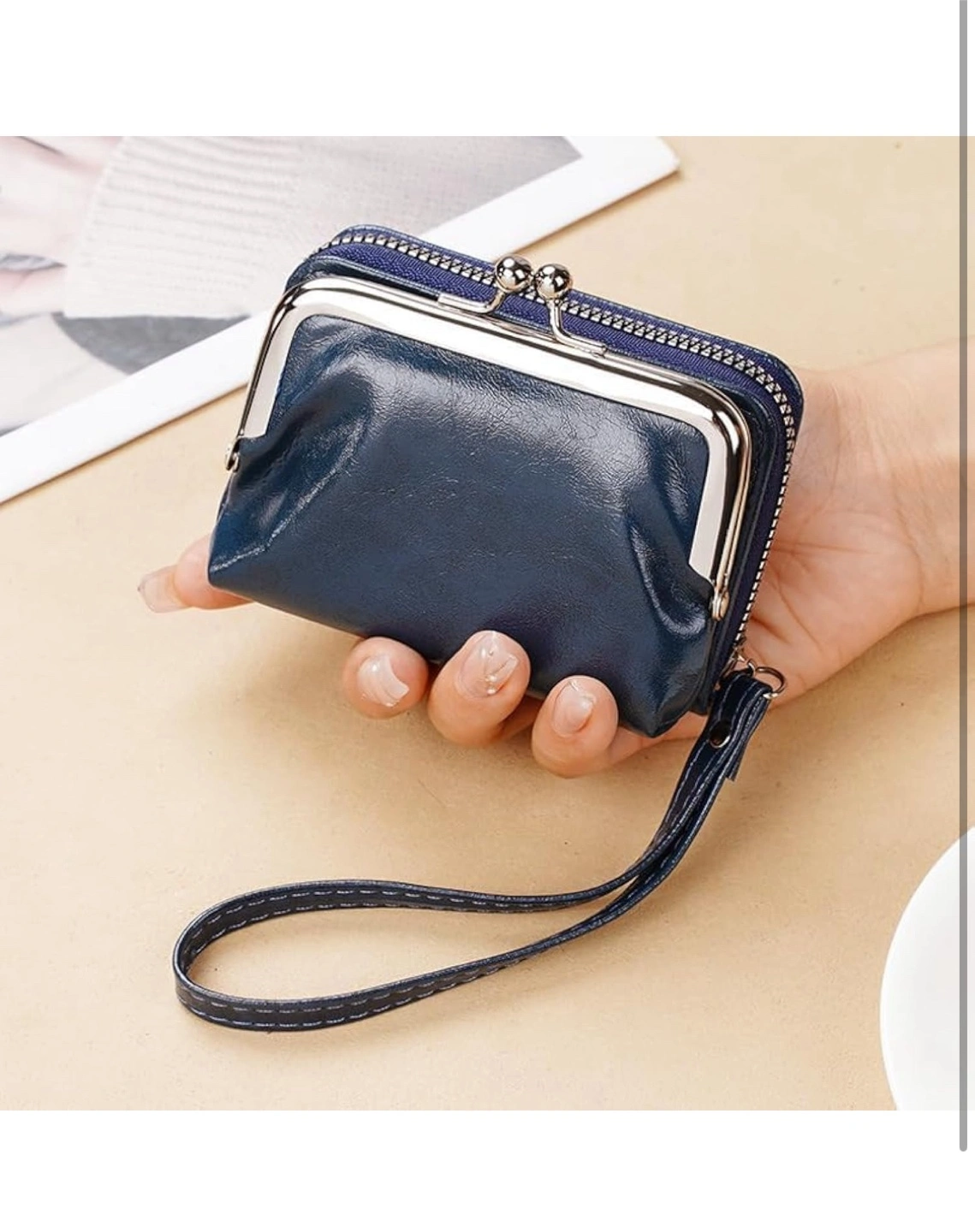 Cute small clasp wallet. Features a kiss-lock clasp. Includes a small handle strap. Carrying a wallet like this can be very soothing.
