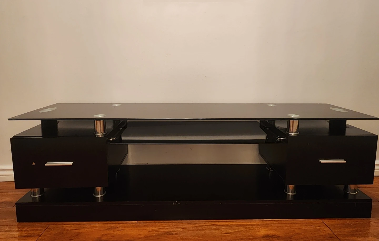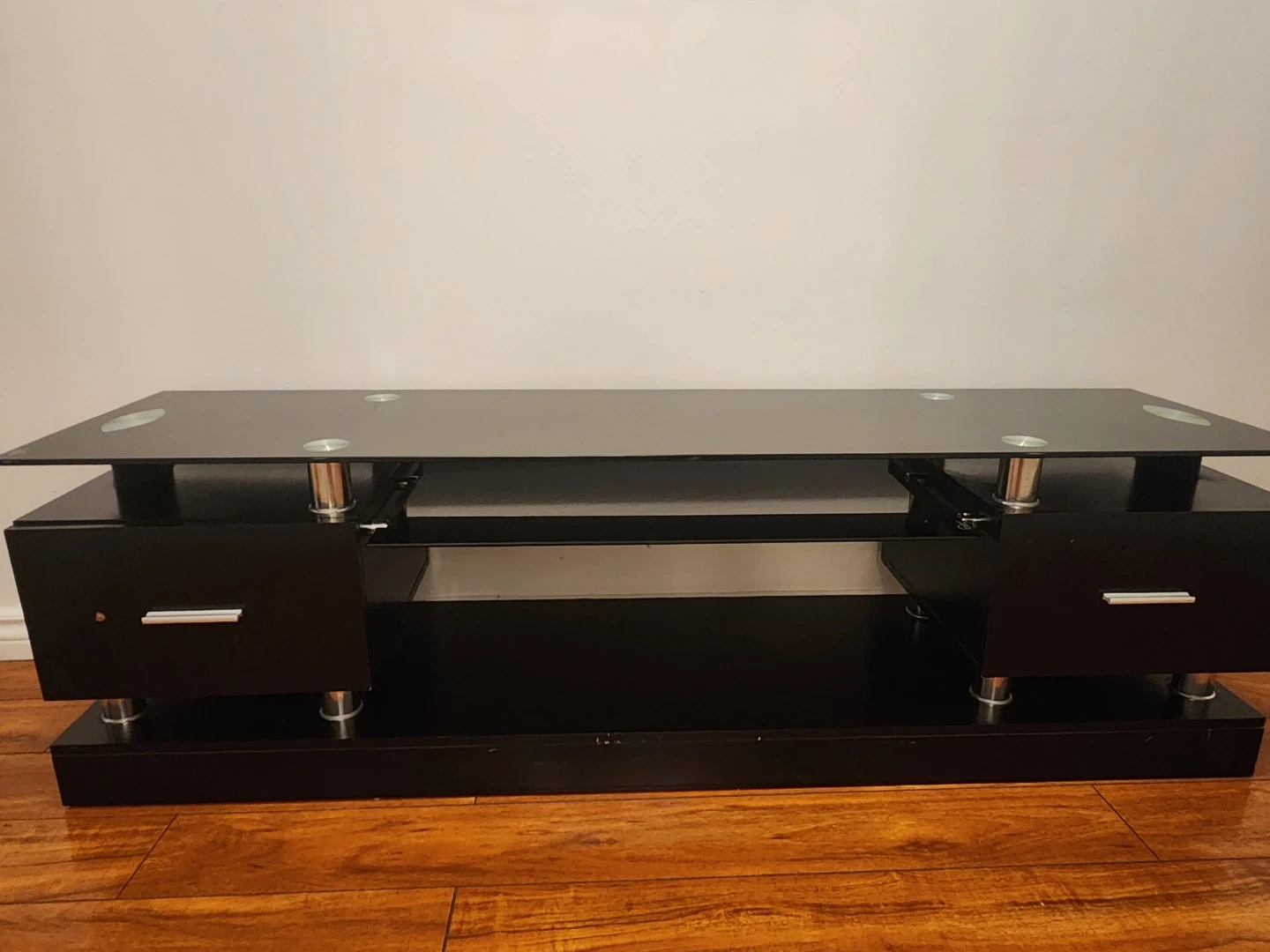 Buy & SellBlack Glass TV Stand with DrawersBlack Glass TV Stand with Drawers$99Black glass TV stand with two drawers. Modern design with chrome accents. Ample storage space for media consoles and accessories.ConditionLike newDimensions63W 18H 15.5DWHERE TO MEETBronx ScienceView MapSELLERverified192326Bronx Mosholu600 reviews0 chats·3 favorites·91 viewsSEND CHAT TO SELLERHi 192326! I’m interested in your listing.Hi 192326! I’m interested in your listing.Get the Karrot app to chatSign In to chat