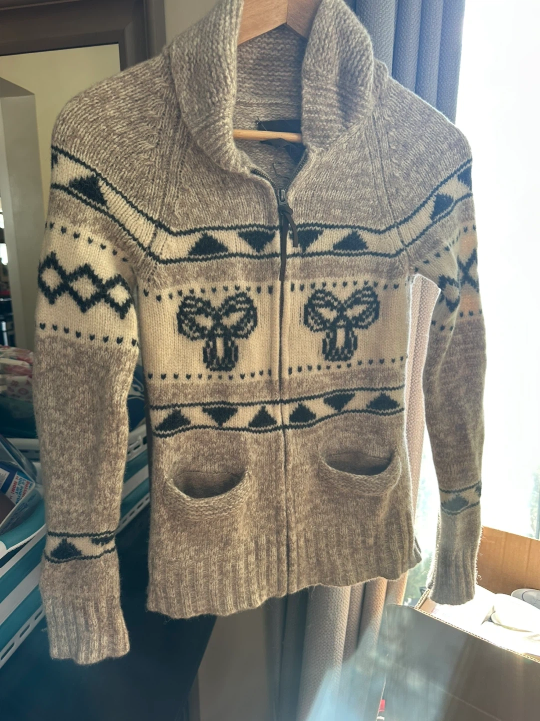 Cozy Pendleton wool zip cardigan in a neutral colour palette! It's a size M and features a unique pattern. Perfect for layering during the cooler months!