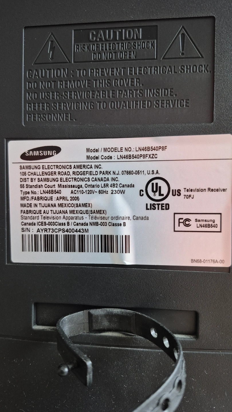 Samsung 46-inch LCD HDTV. Multiple inputs including HDMI, component video, and more. Great for streaming and gaming. Model LN46B540P8FXZC