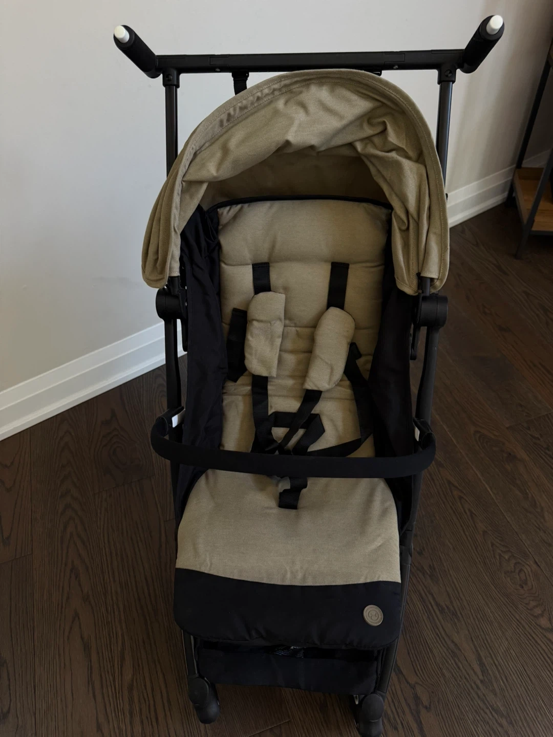 Lightweight and compact CYBEX Libelle stroller, perfect for travel. It features a small folding size and breathable fabric. The seat reclines for comfort. It's easy to manoeuvre. This stroller is great for parents on the go!