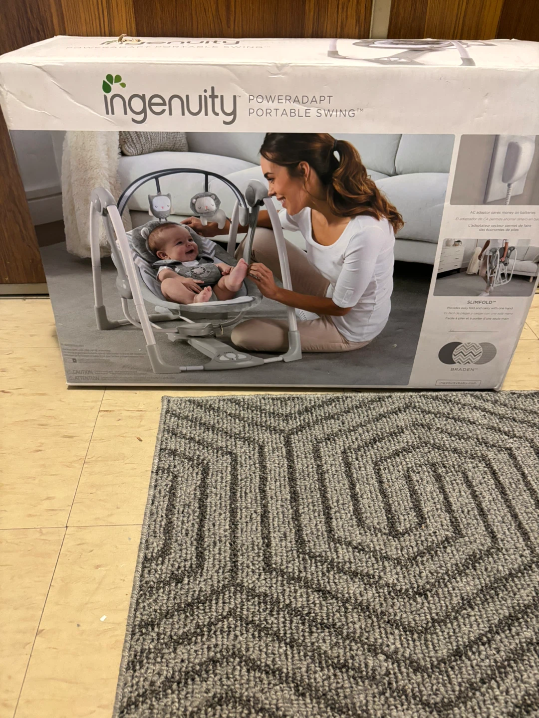 Selling an Ingenuity Power Adapt Portable Swing. It comes with an AC adapter to save money on batteries. It also has a SlimFold design for easy folding and carrying