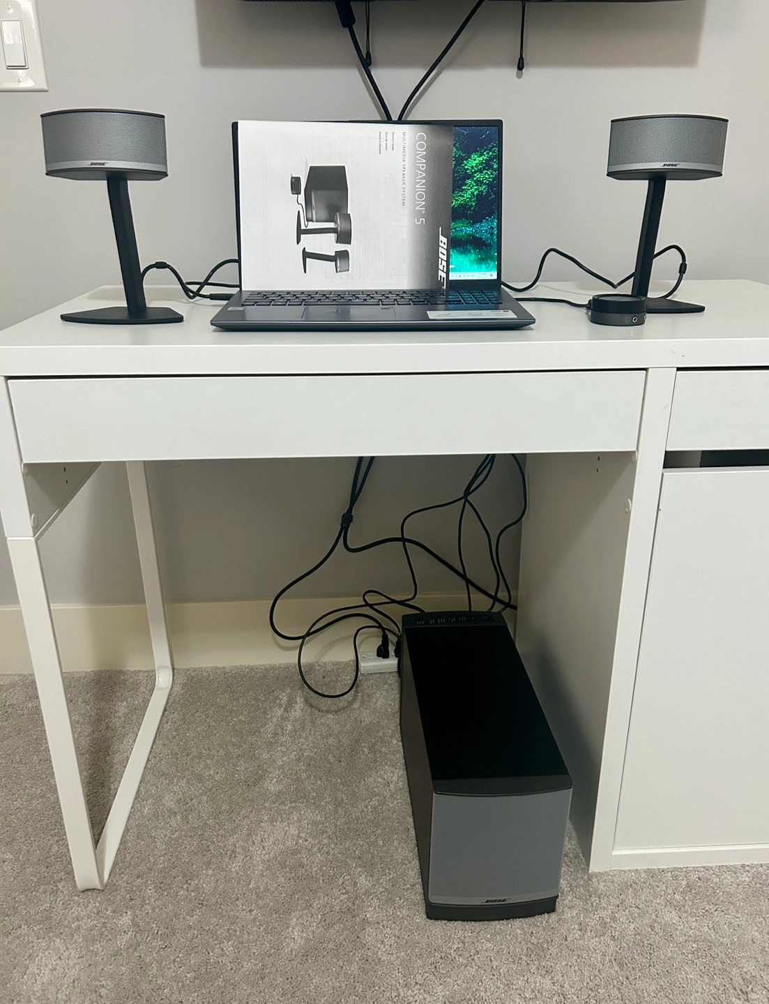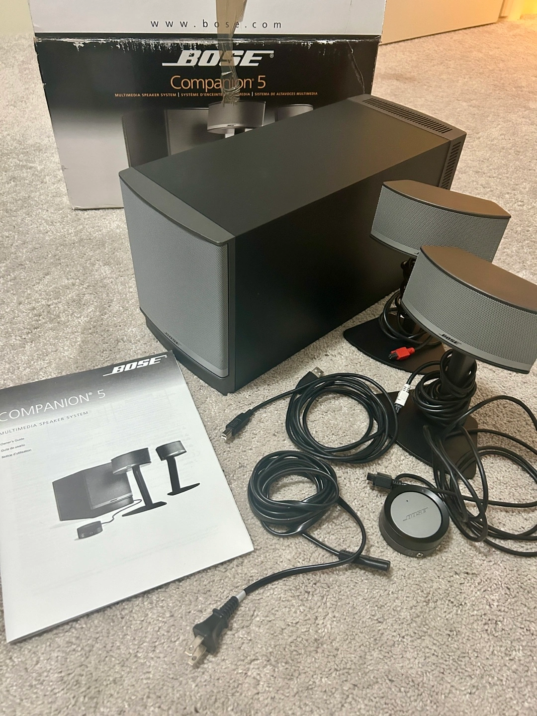 It looks new, the sound is AMAZING, however, there’s this slight hissing noise when the system is connected to the plug🔌 (It goes away and comes back. I am not sure why).