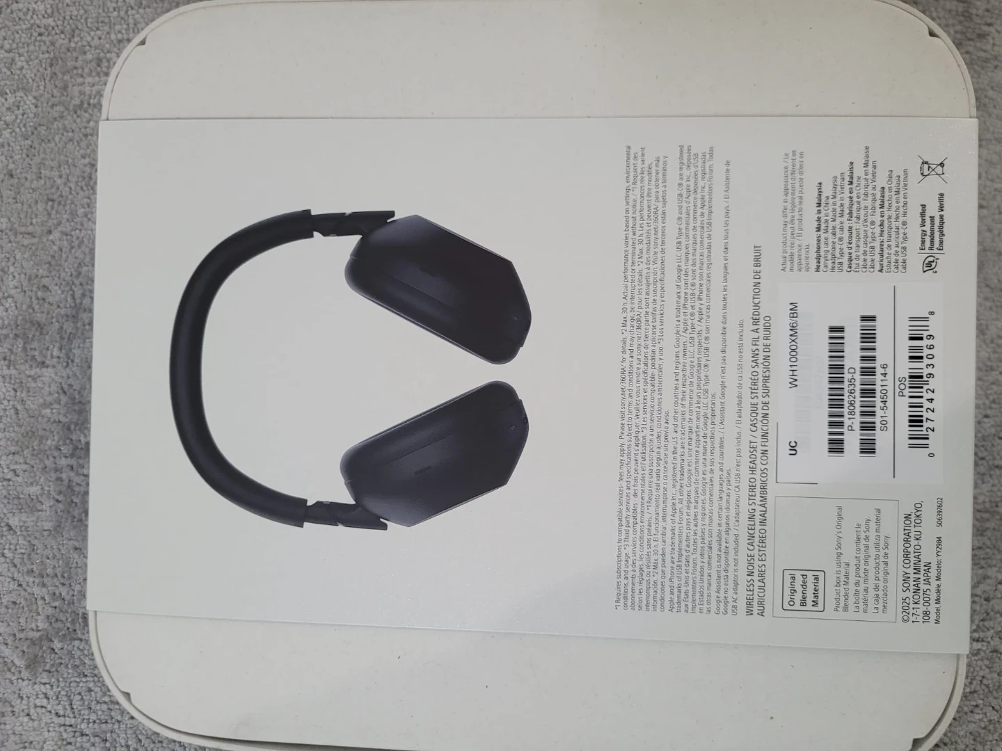Sony WH-1000XM6 wireless noise cancelling headphones in black. These headphones offer industry-leading noise cancellation and premium sound quality. Includes original box and accessories.