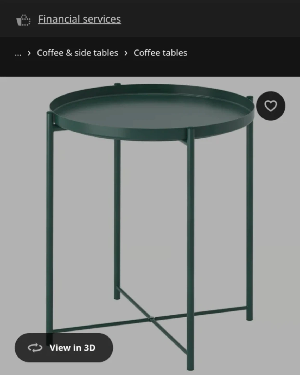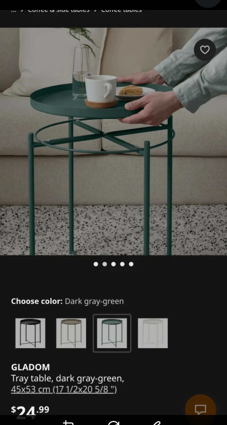 This is the IKEA GLADOM tray table in the dark gray-green colour. It's 45x53 cm (17 1/2x20 5/8 "). This table is handy for quick needs.