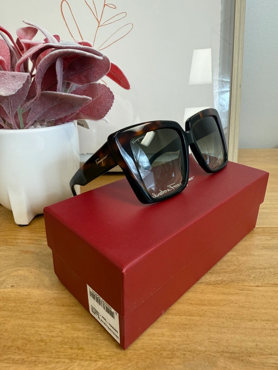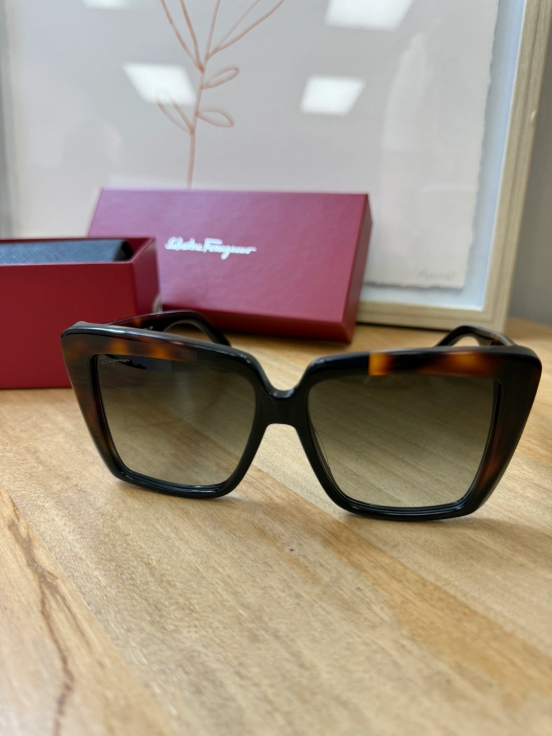Selling a pair of Salvatore Ferragamo sunglasses. They come with the original box and case. The frames are a stylish tortoiseshell colour.