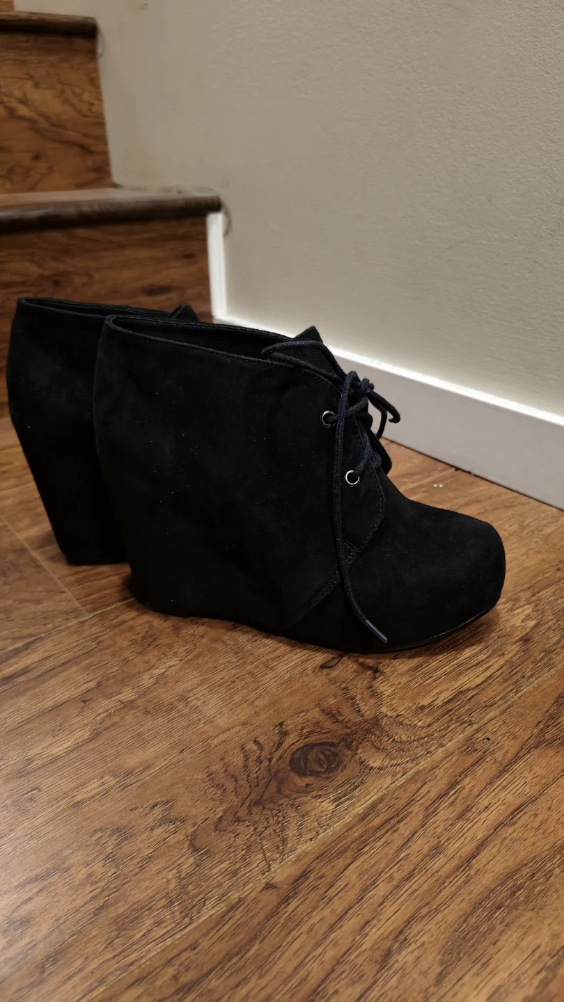 Black Wedge Heel Booties - Size 7