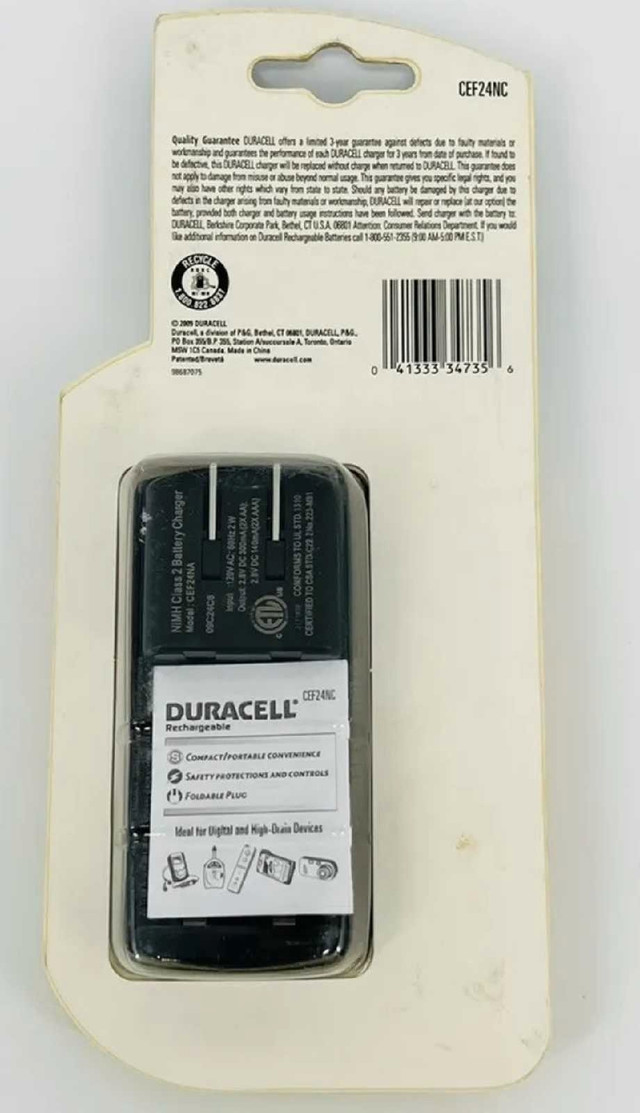 These brand new, factory sealed, compact chargers can hold two AAA or two AA NiMH rechargeable batteries.