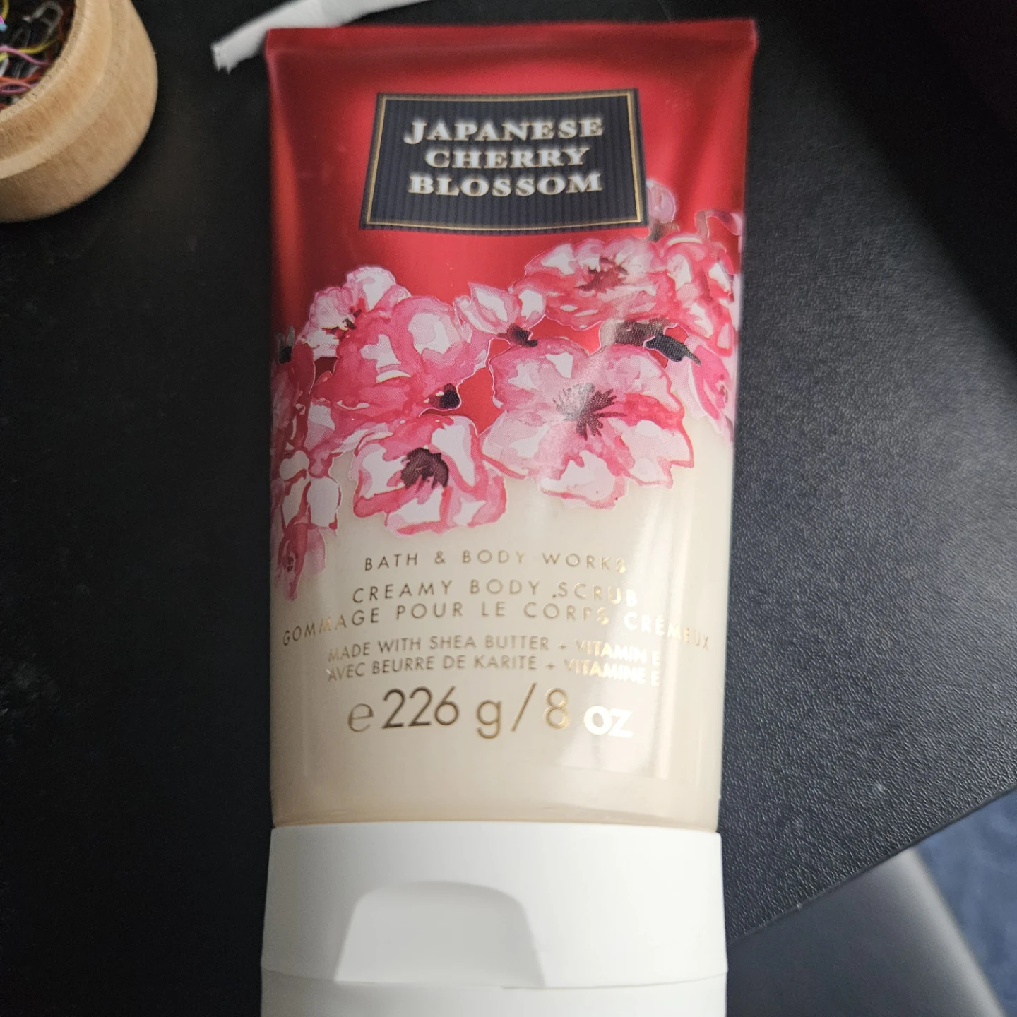 Brand new Bath & Body Works Japanese Cherry Blossom Creamy Body Scrub. It's made with shea butter and vitamin E. 226g / 8 oz.