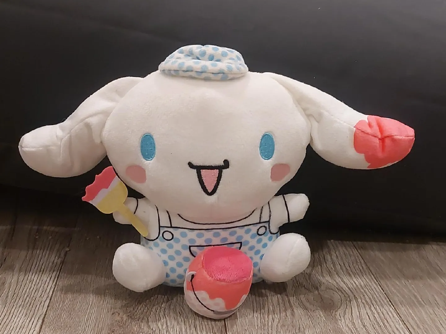 Selling a Cinnamoroll plushie! It's in great condition and comes with a cute little paint bucket accessory. Perfect for any Sanrio fan or as a cuddly friend