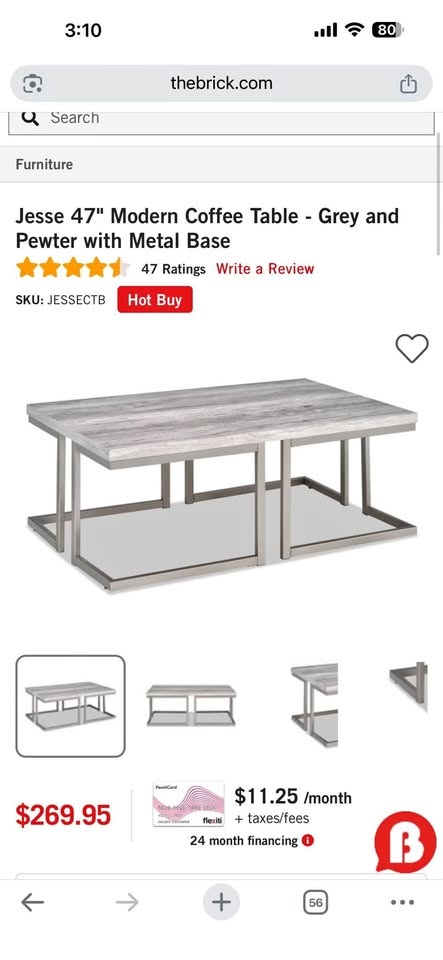 Buy & SellBrand New Grey Coffee TableBrand New Grey Coffee Table$150Brand new grey coffee table. No dents or scratches. Originally purchased for $250.WHERE TO MEETCheck LocationView MapSELLERSandeyTecumseh100 reviews0 chats·0 favorites·13 viewsSEND CHAT TO SELLERHi Sandey! I’m interested in your listing.Hi Sandey! I’m interested in your listing.Get the Karrot app to chatSign In to chat