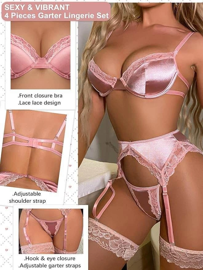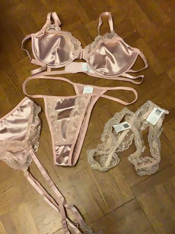 New in package. The set I have is a lighter pink than stock photos, as shown in the last pictures. Tag says large, but please refer to the size chart as it runs on the smaller side.