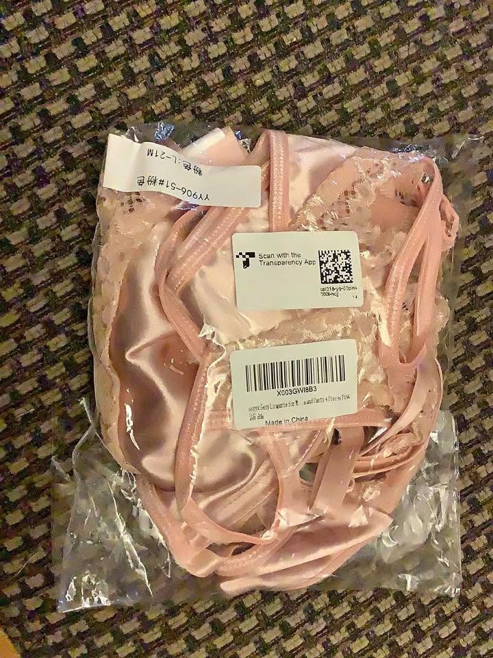 New in package. The set I have is a lighter pink than stock photos, as shown in the last pictures. Tag says large, but please refer to the size chart as it runs on the smaller side.